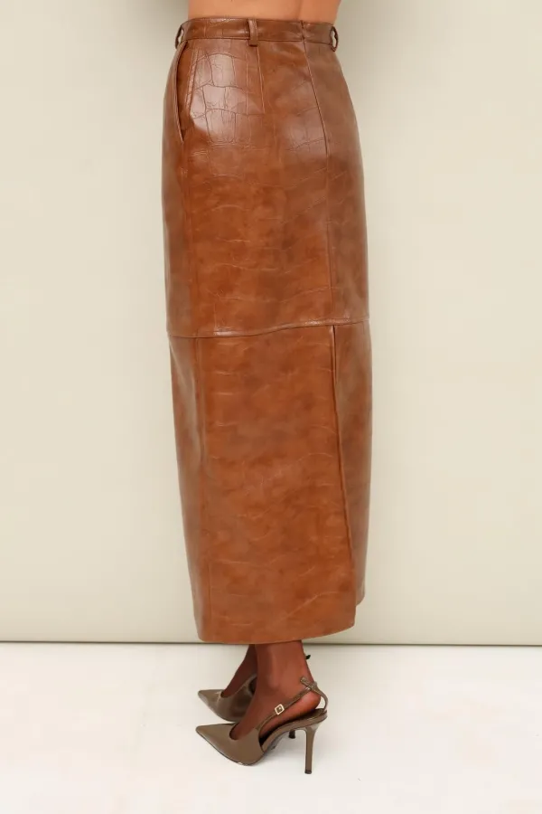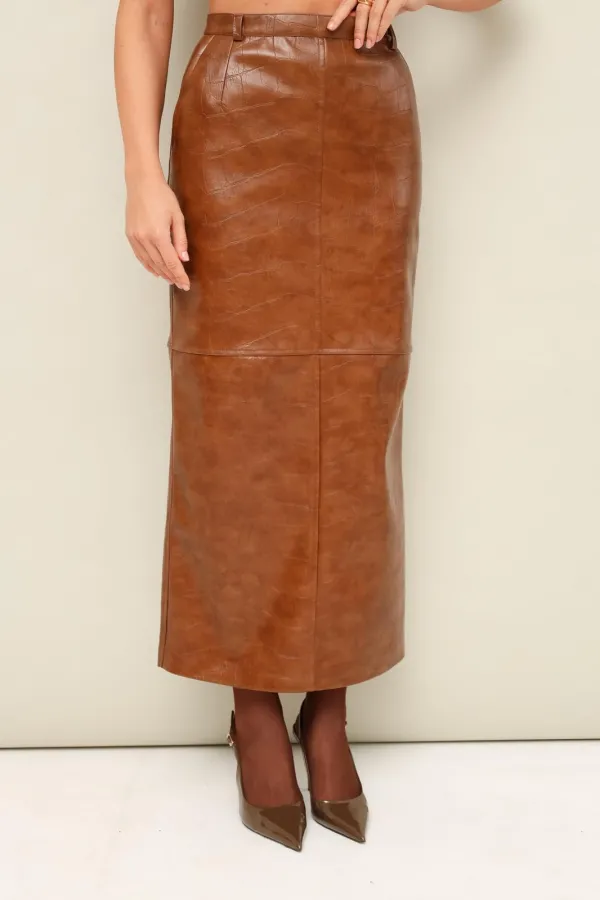 Стильный 2-предметный комплект, состоящий из жакета и юбки, выполненный из экокожи.