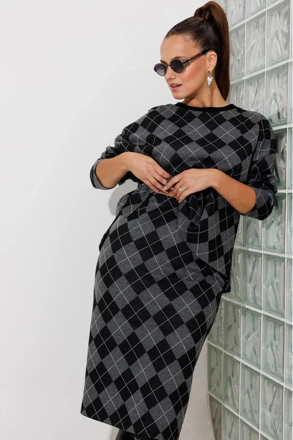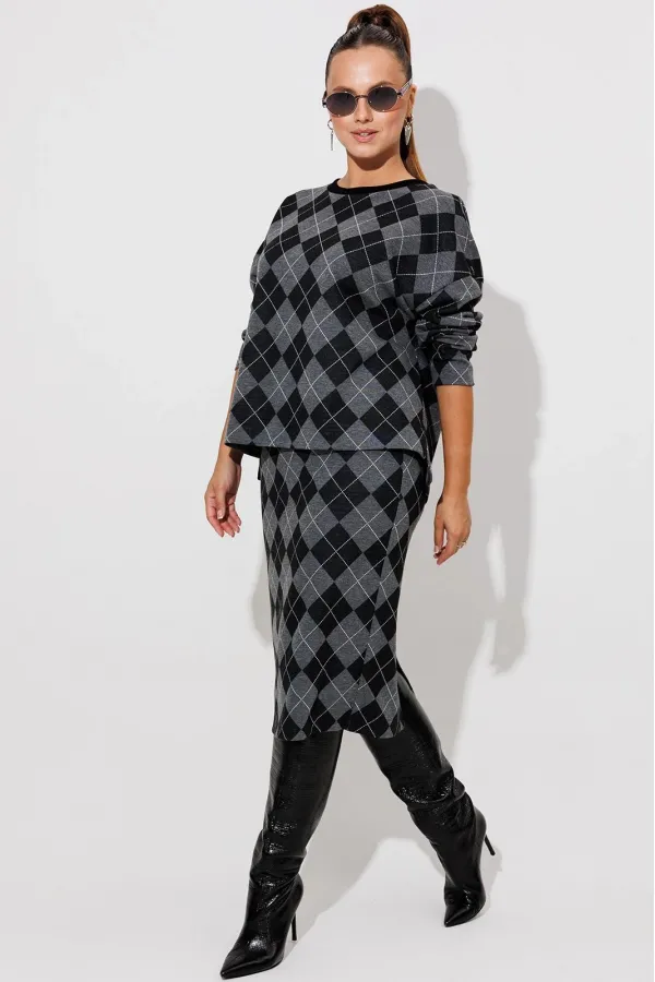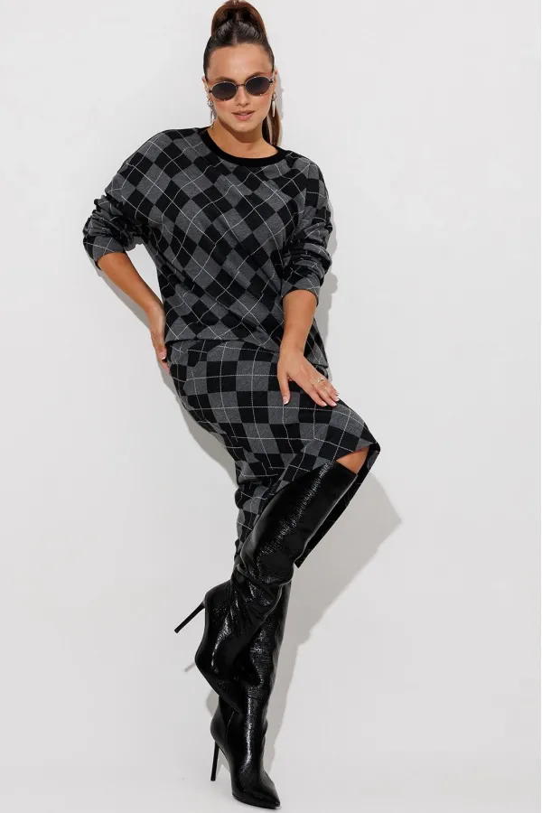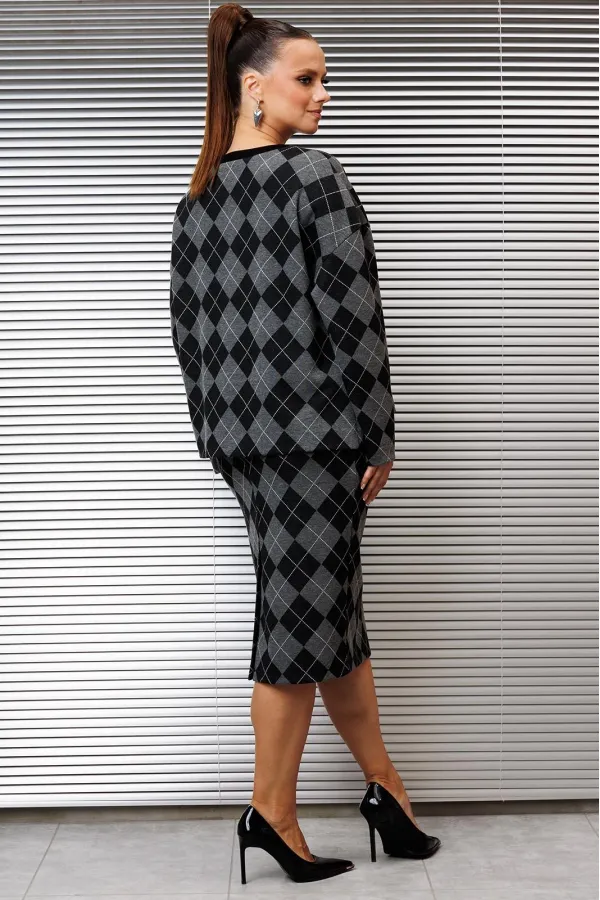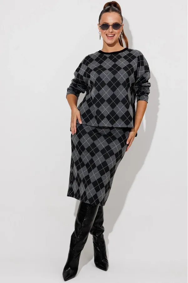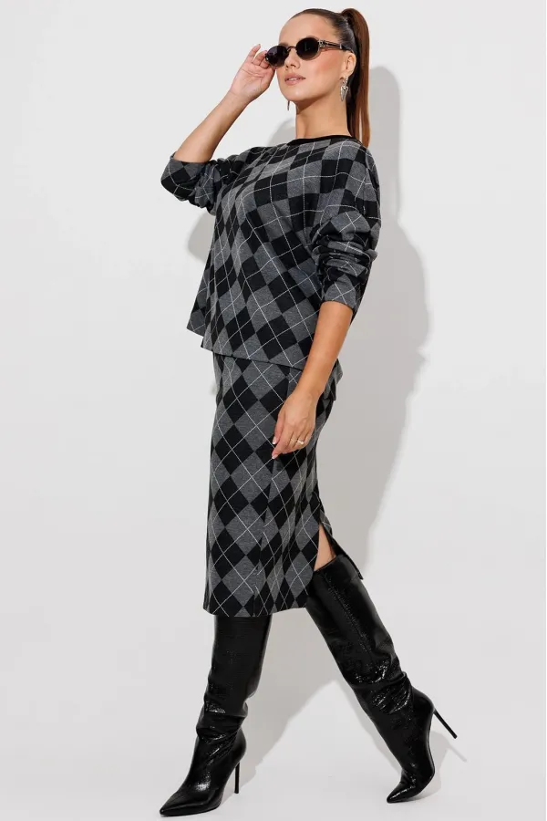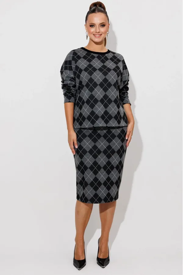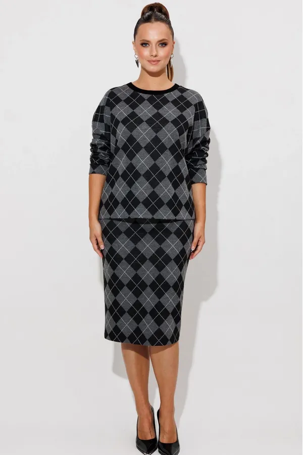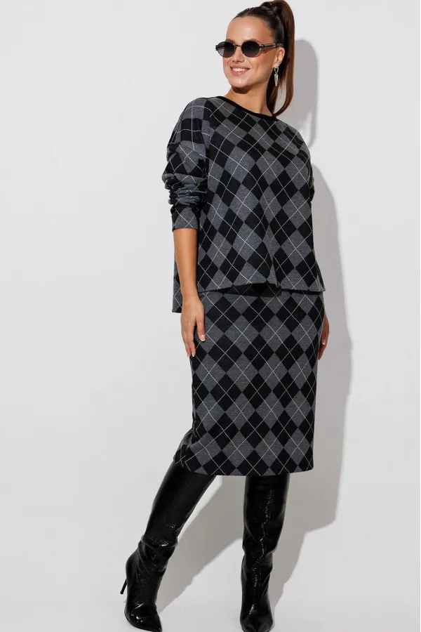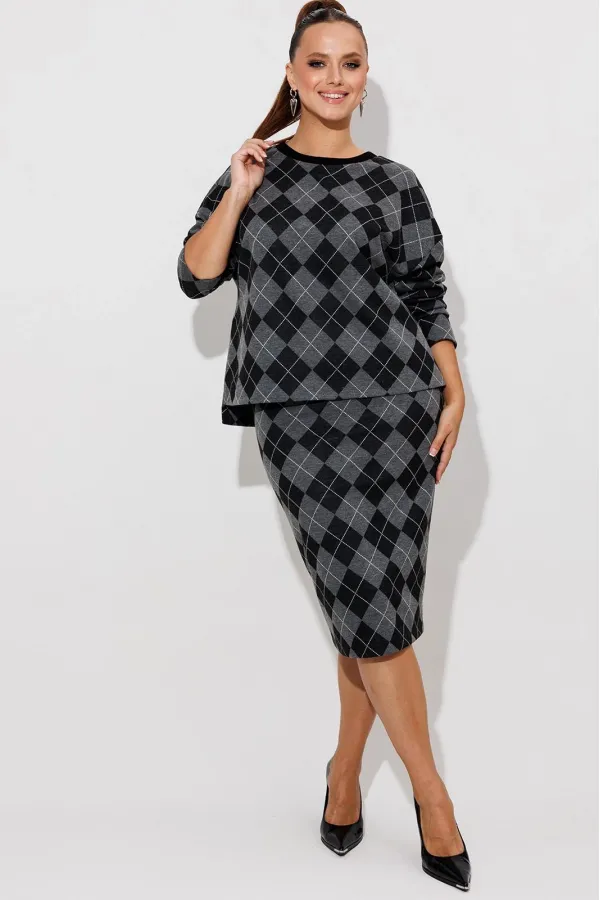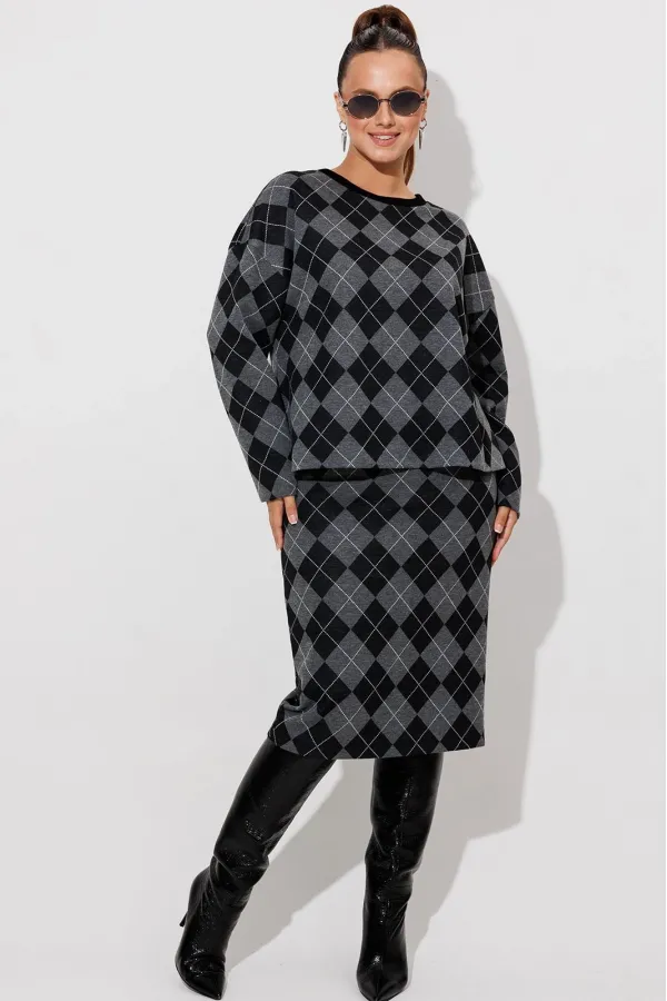 Данный комплект выполнен из мягкого трикотажного полотна, идеально подойдёт для демисезонного периода, благодаря натуральному составу в нём будет тепло но не жарко. Свитшот свободного кроя с длинными рукавами и спущенным плечом, предаёт образу мягкость и непринуждённость. Горловина выполнила из отделочной ткани в рубчик, что является очень функциональным и стильным элементом. Юбка прямая, на подкладке, на поясе, слегка зауженная к низу. Длина ниже линии колена. Средний шов юбки заканчивается шлицей.
