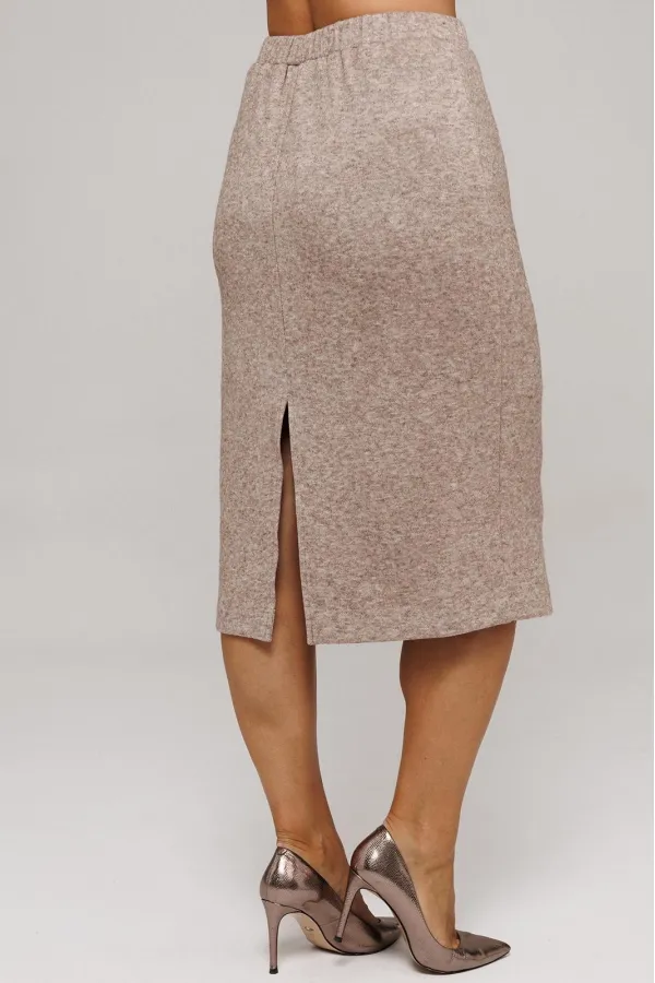 Юбка на подкладке и резинке, длиной до середины икры, с разрезом по среднему шву спинки, что обеспечивает дополнительную свободу при движении.