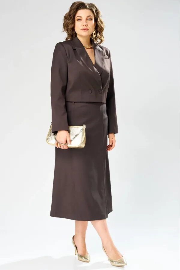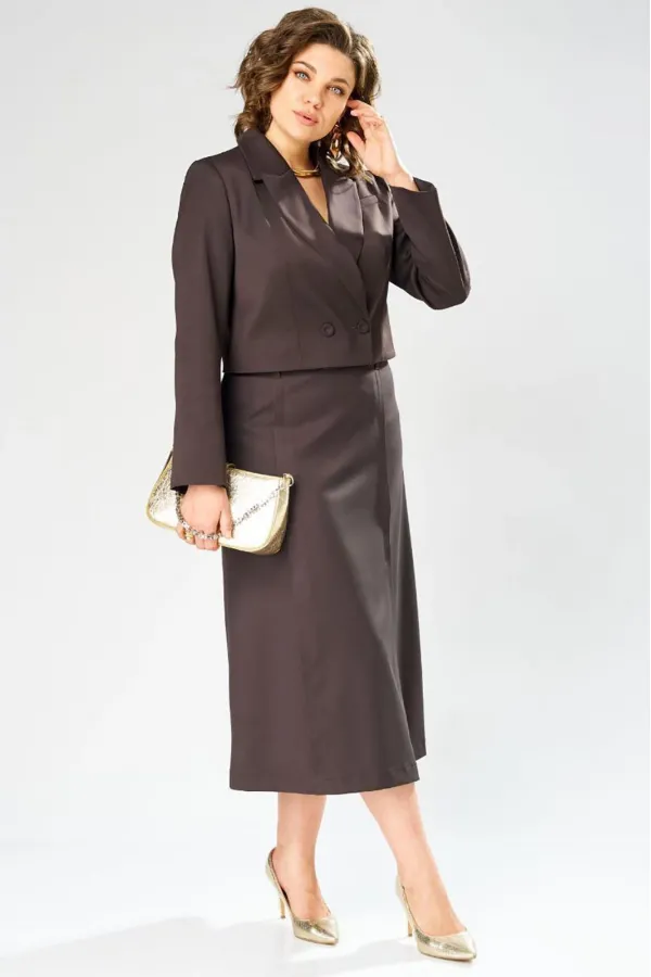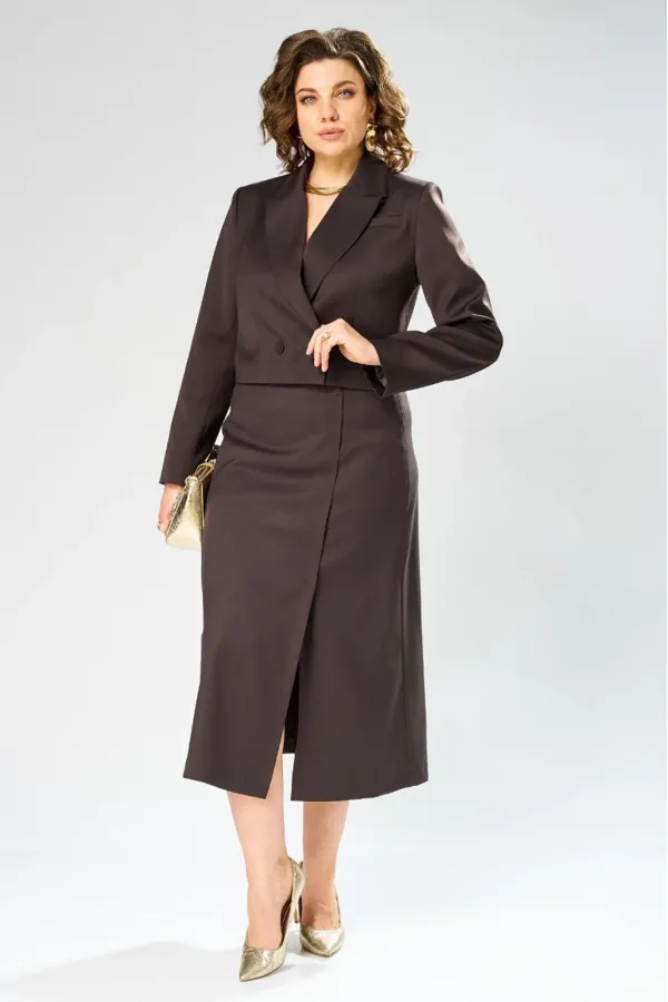 Перед вами женский комплект из двух предметов, включающий жакет и юбку.