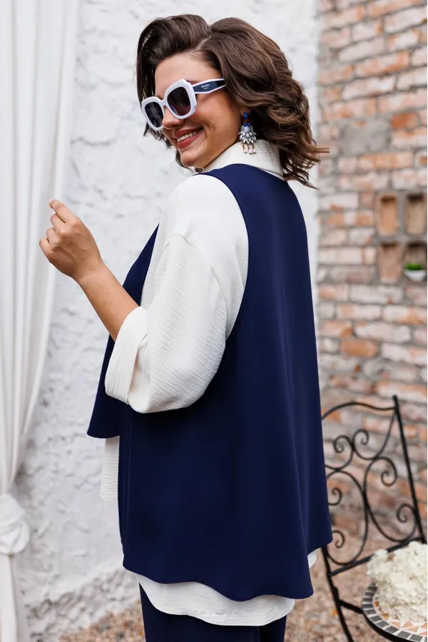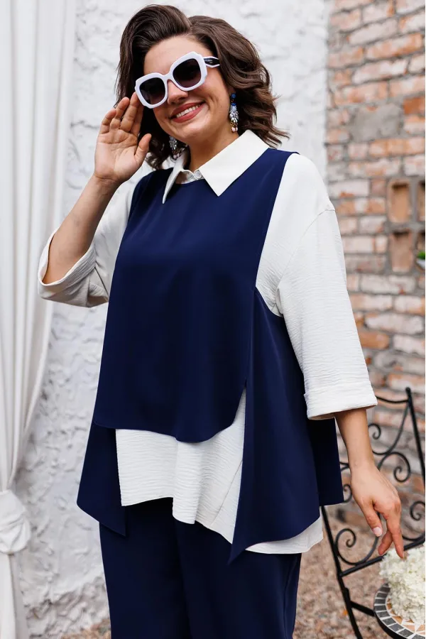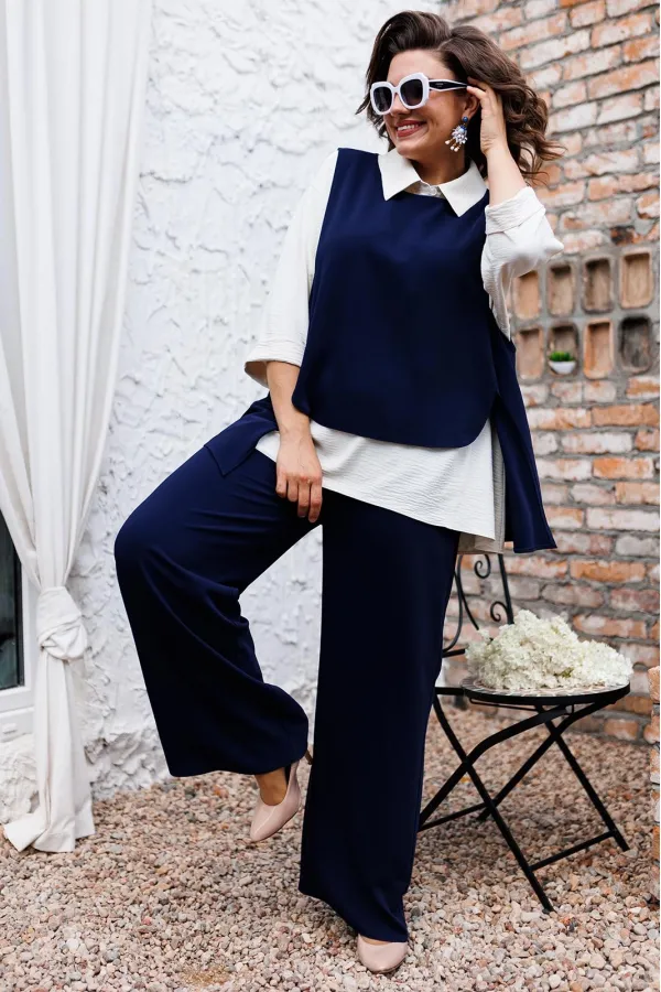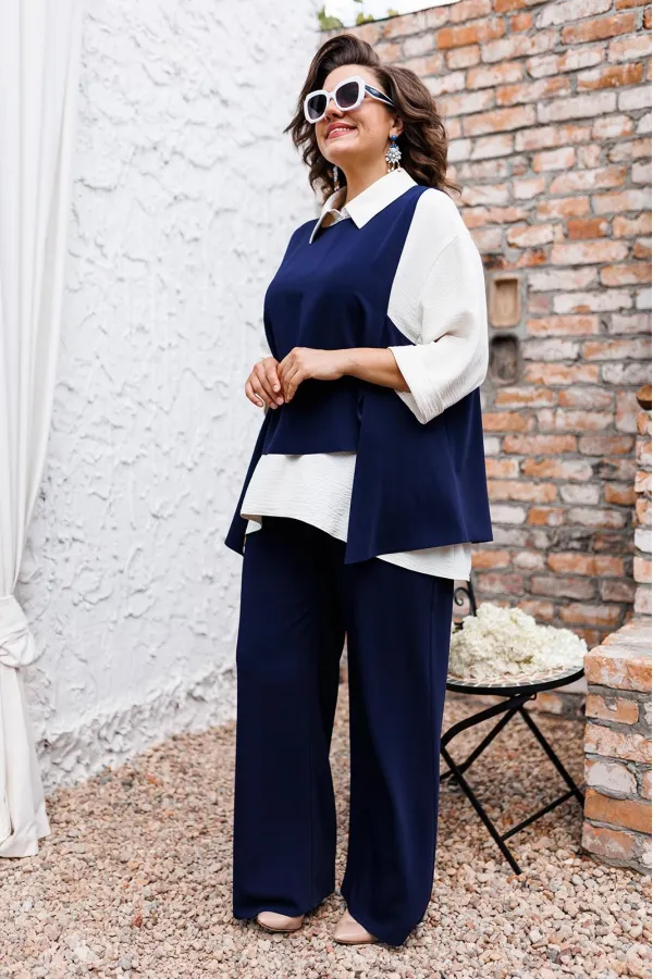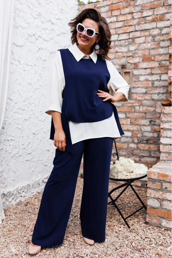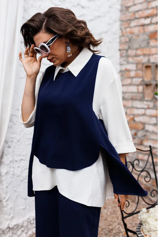 | Ткань | Брюки жилет: 85% пэ 15% вискоза. Блузка: 64% пэ 33% вискоза 3% эластан. |