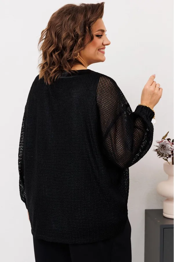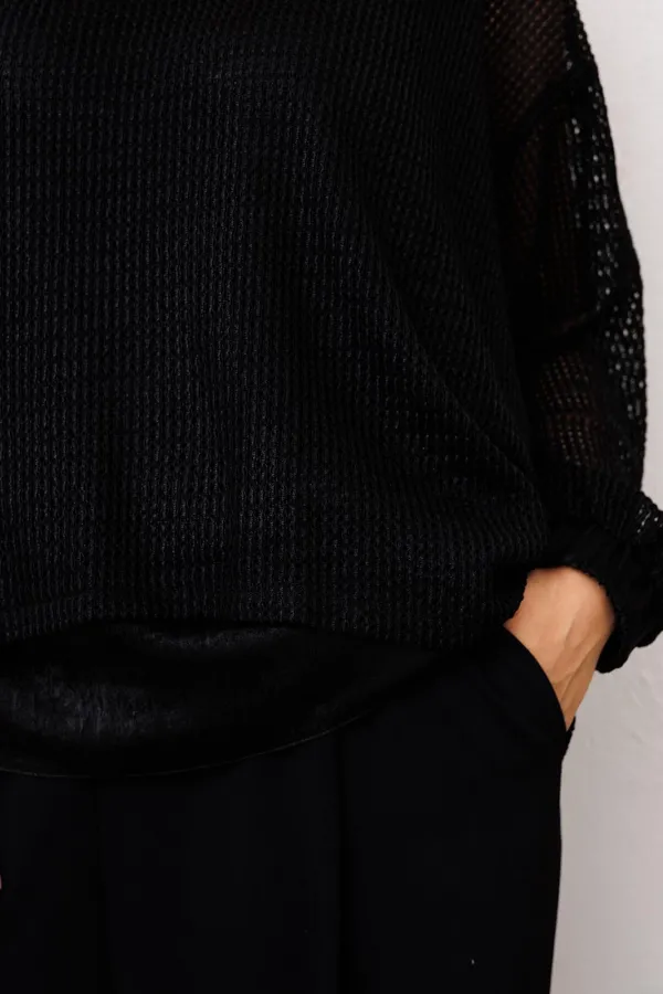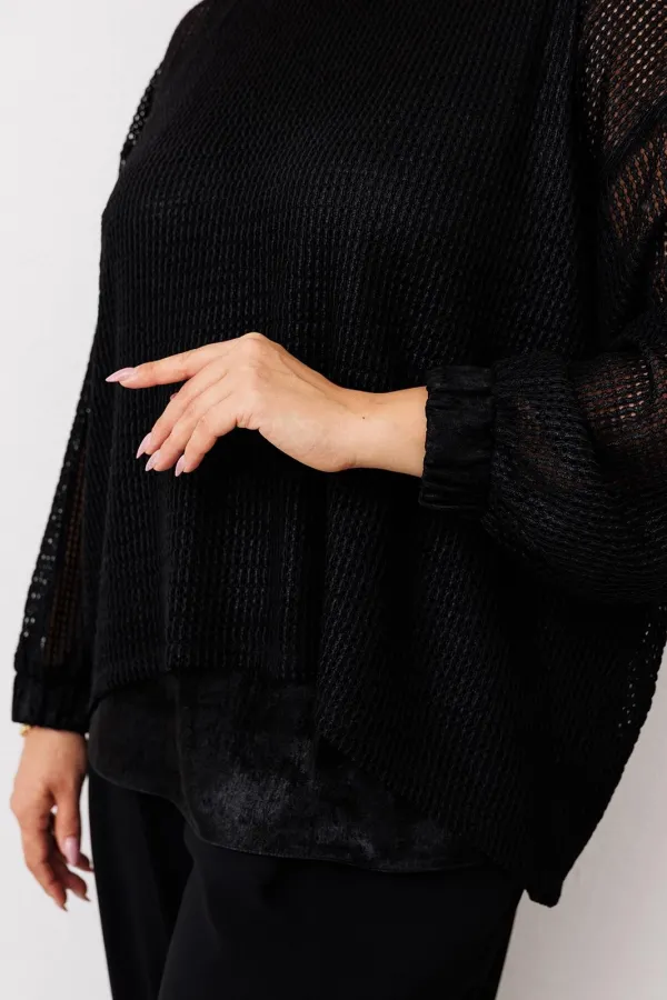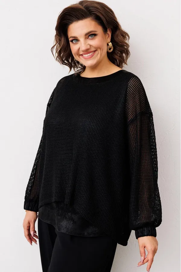 Джемпер: 85% полиэстер 10% хлопок 5% спандекс. Топ: 100% полиэстер. Брюки: 85% полиэстер 15% вискоза.