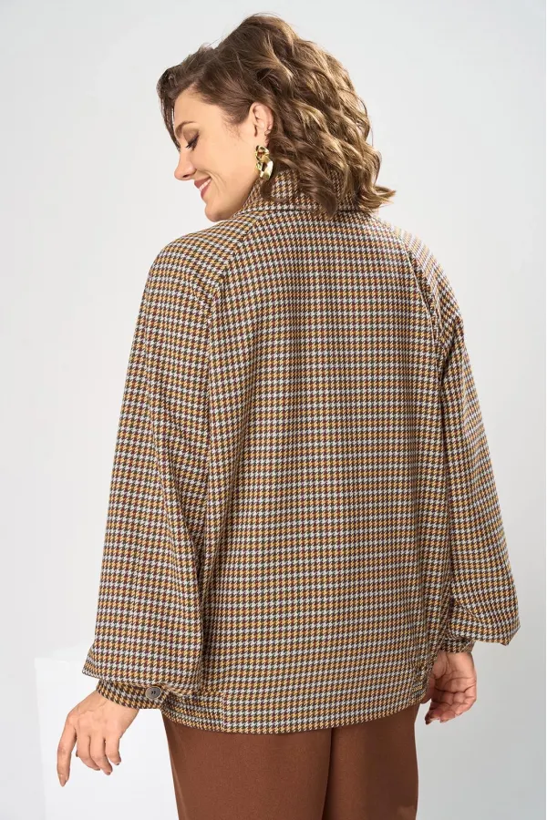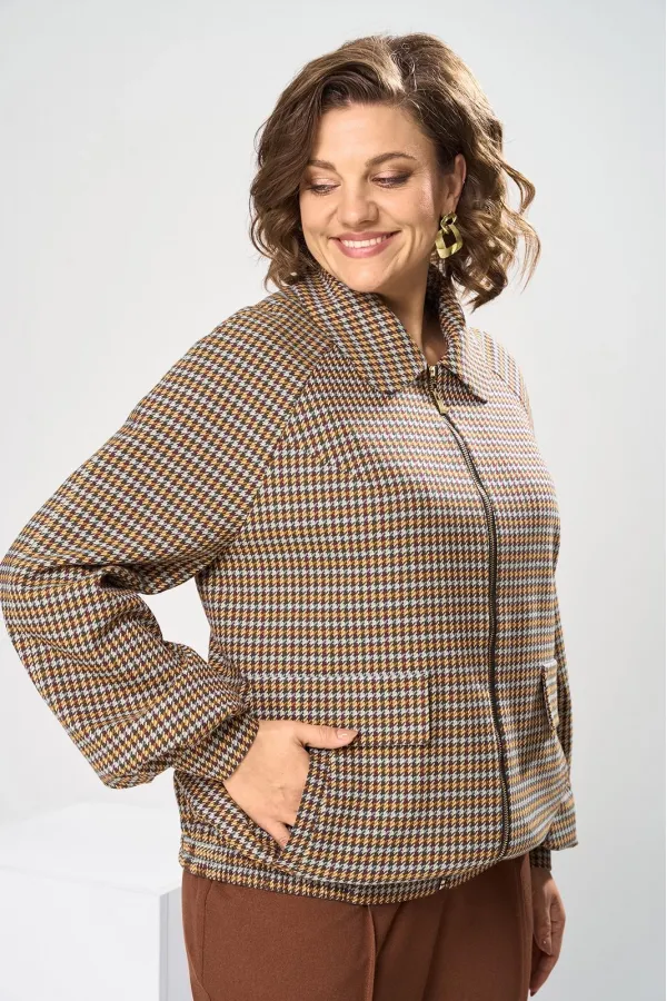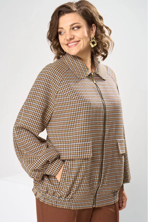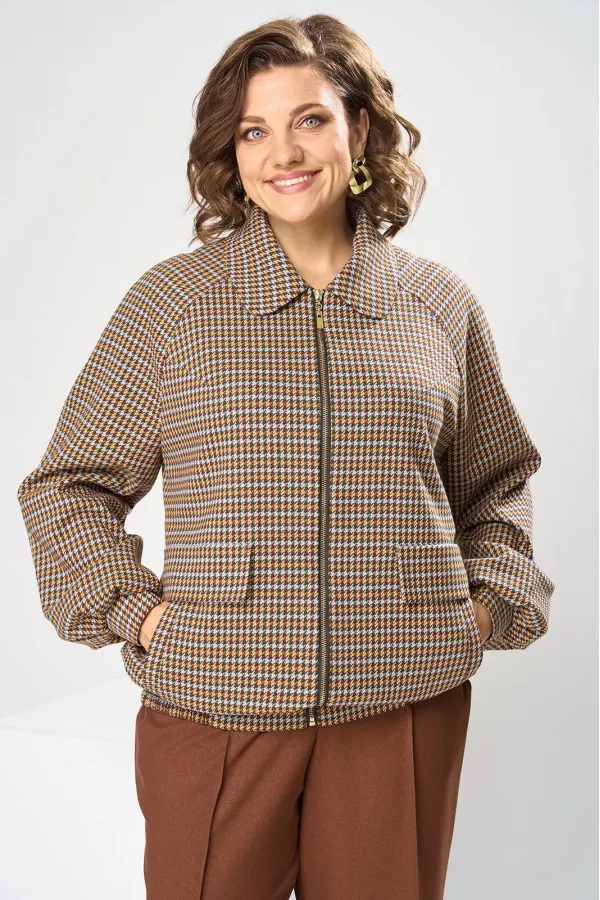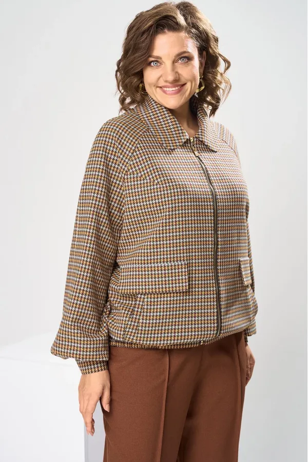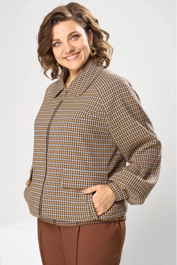 Костюм женский, предназначен для повседневной носки. Костюм женский 2-х предметный. Жакет и брюки. Жакет женский прямого силуэта, длиной до линии бёдер. Перед с 2-мя нагрудными вытачками, выходящими из пройм, с 2-мя прорезными карманами с листочками расположенными на уровне линии бёдер с 2-мя построчными клапанами, расположенными над карманами. Спинка цельнокроеная. Низ частично (по бокам) с втачным поясом собранным на эластичную тесьму, закреплённую 2-мя отделочными строчками. Горловина с втачным воротником с закруглёнными концами с отрезной стойкой. Застёжка центральная бортовая на разъёмную тесьму-молнию. Рукав втачной реглан, 2-х шовный, длинный с 4-мя односторонними складками по низу и притачной манжетой, с застёжкой на 1-ну обмётанную петлю и 1-ну пришивную пуговицу. Жакет без плечевых накладок. Жакет на притачной подкладке. Брюки женские прямые длинные.