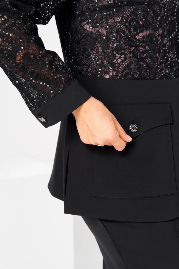 | Ткань | Жакет и брюки: 85% пэ 15% вискоза. Топ: 97% пэ 3% спандекс |