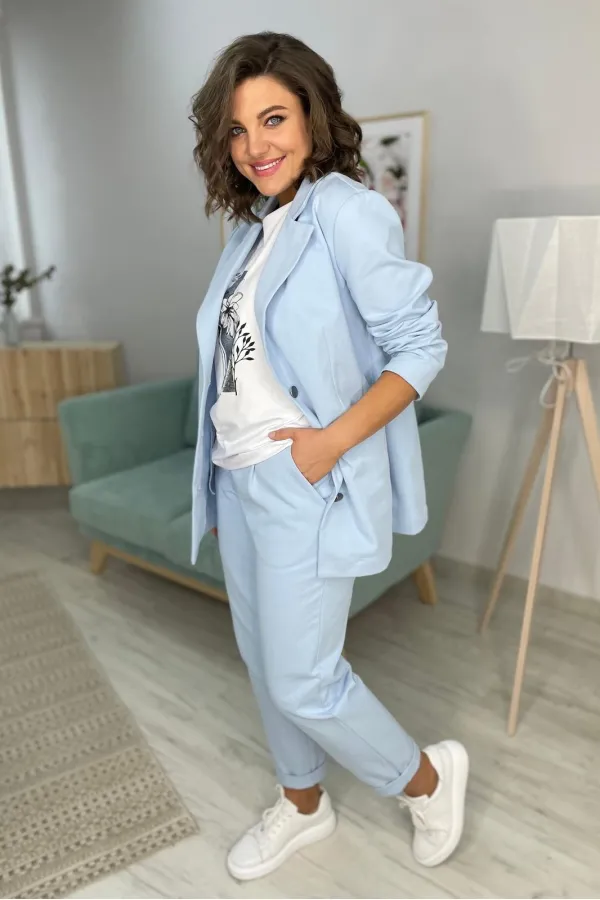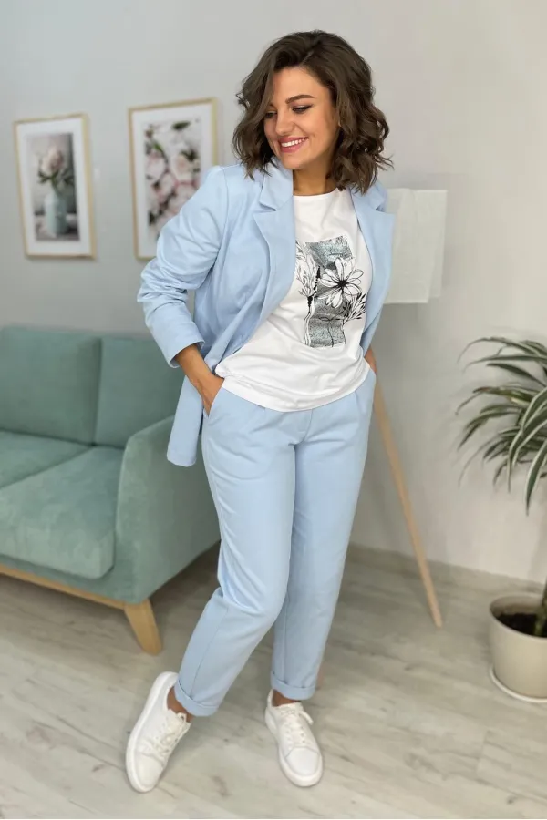Костюм женский 2-ух предметный из джинсовой ткани. Жакет женский из джинсовой ткани, полуприлегающего силуэта. По переду жакета расположены рельефы. Прорезной карман с листочкой.Спинка жакета со средним швом и рельефом. ... Читать далее...