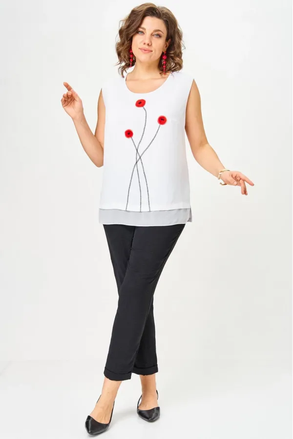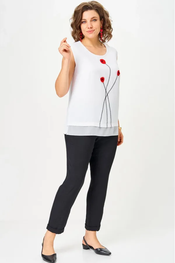 Топ полуприлегающего силуэта. Декорирован аппликацией из ткани.