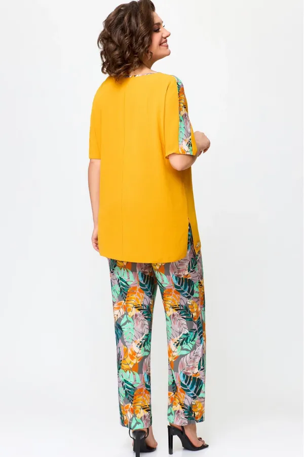 Костюм женский 2-х предметный, состоящий из туники и брюкТуника прямого силуэта со спущенной линией плеча. По плечевому шву лампас. По левой части переда накладной карман. В боковых швах разрезы. Брюки прямые. Спереди ра... Читать далее...