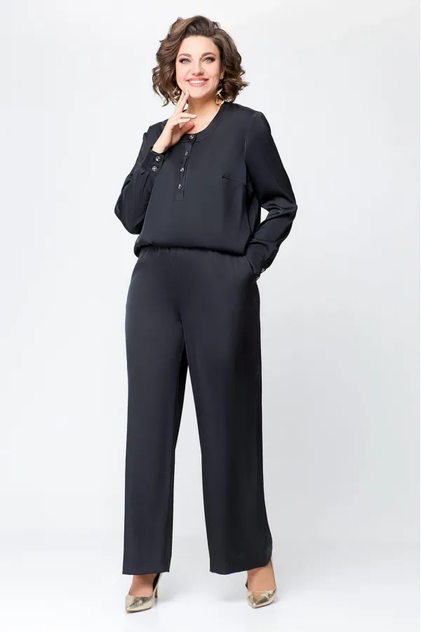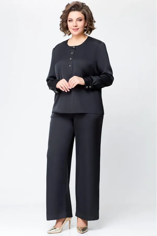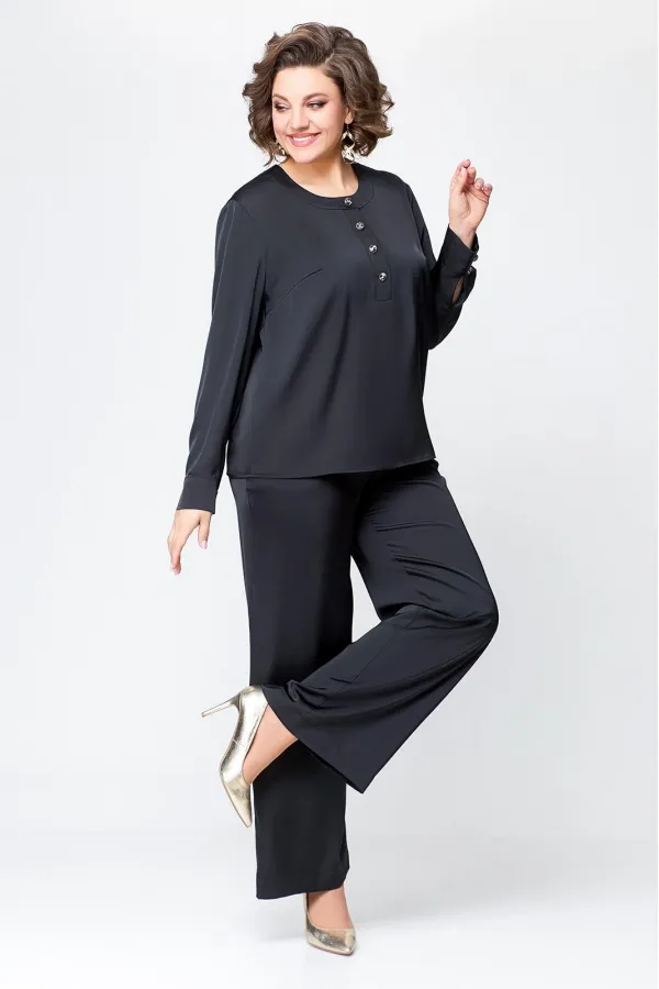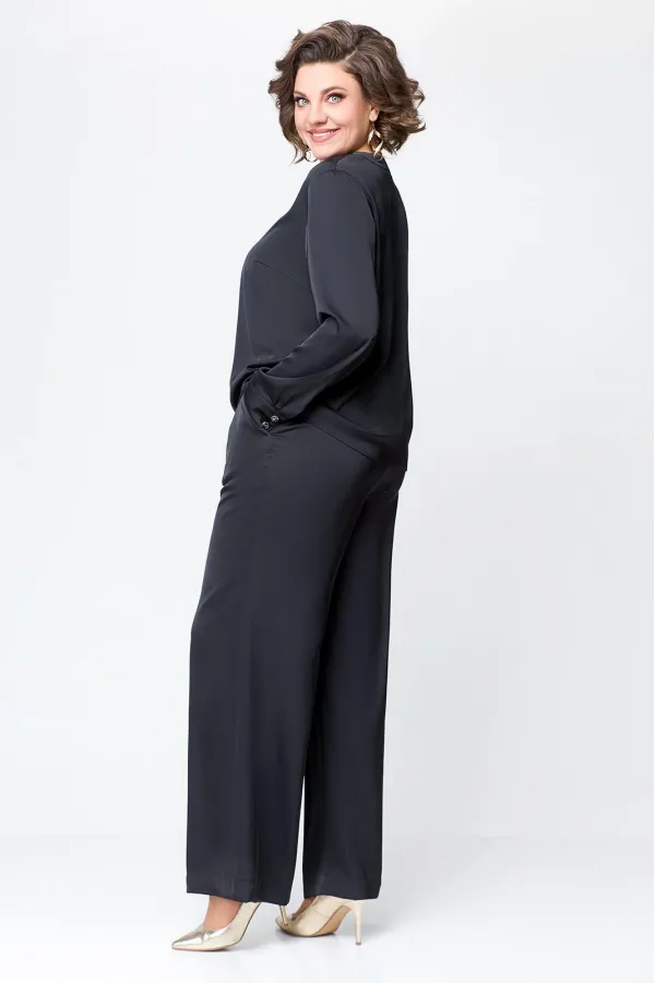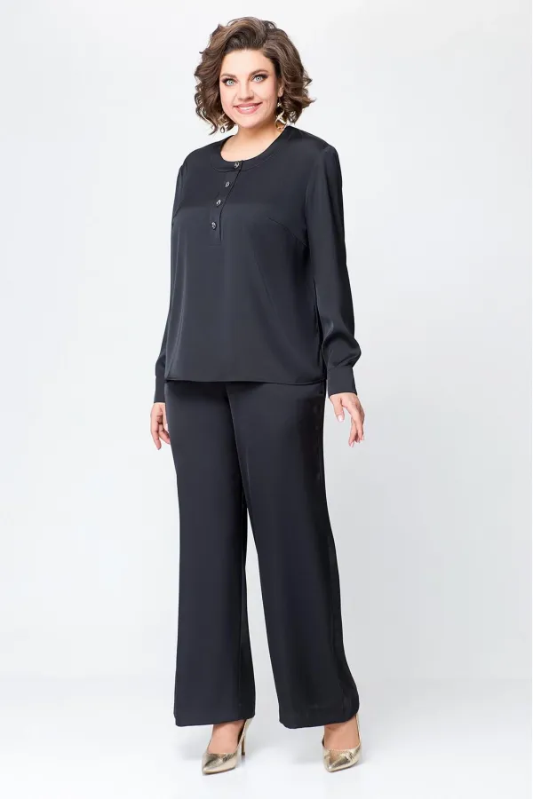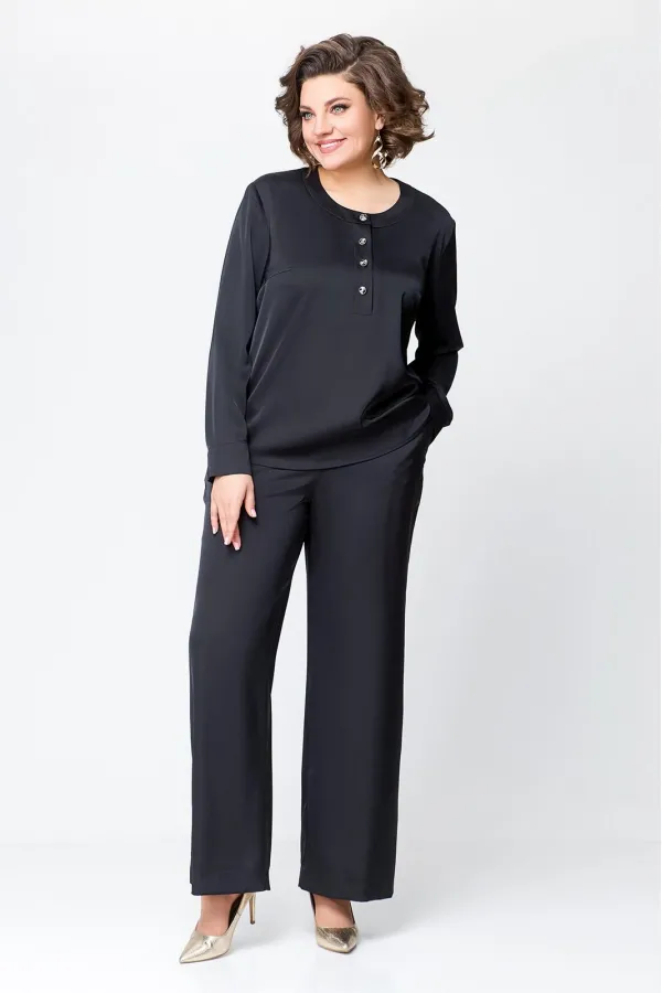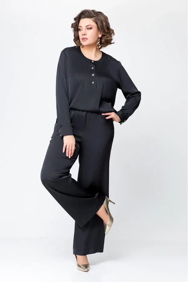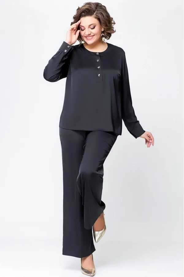 Костюм женский, состоящий из брюк и блузы. Выполнен из плотного , струящегося сатина турецкого производства.Блуза прямого силуэта, с застежкой «поло» на 4 петли и пуговицы на ножке. На полочке расположены нагрудные вытач... Читать далее...
