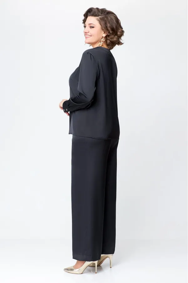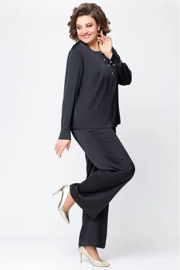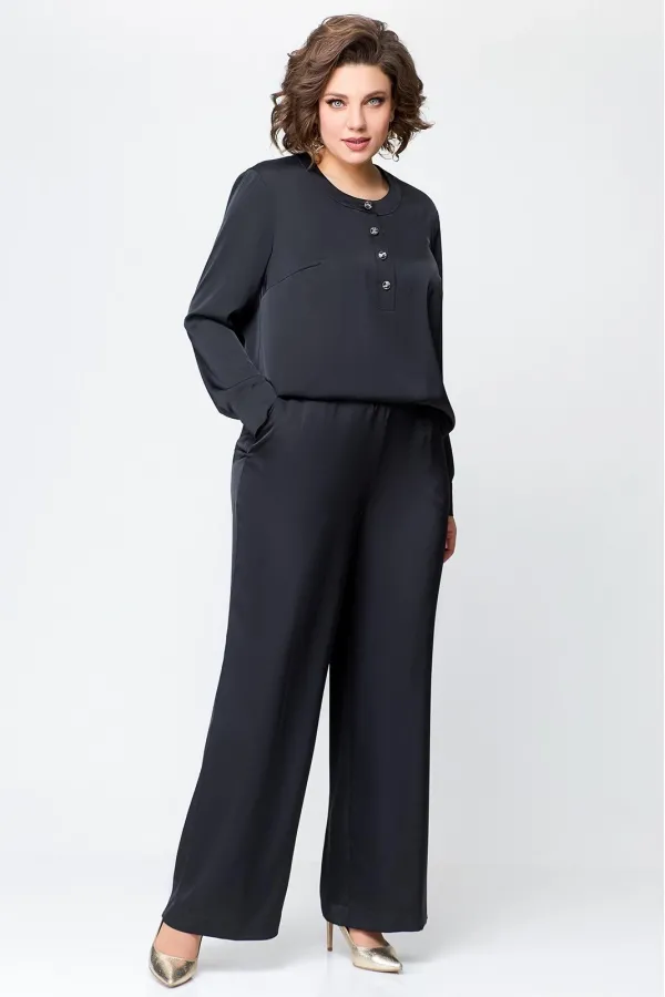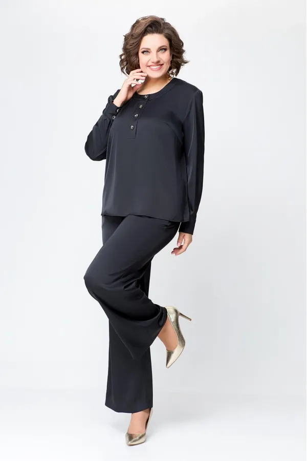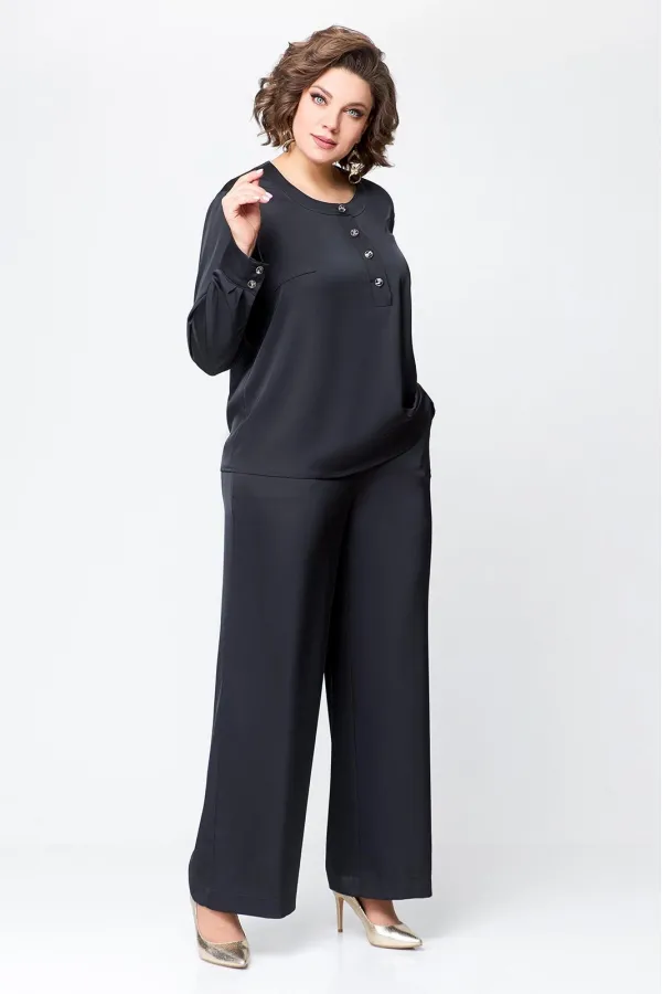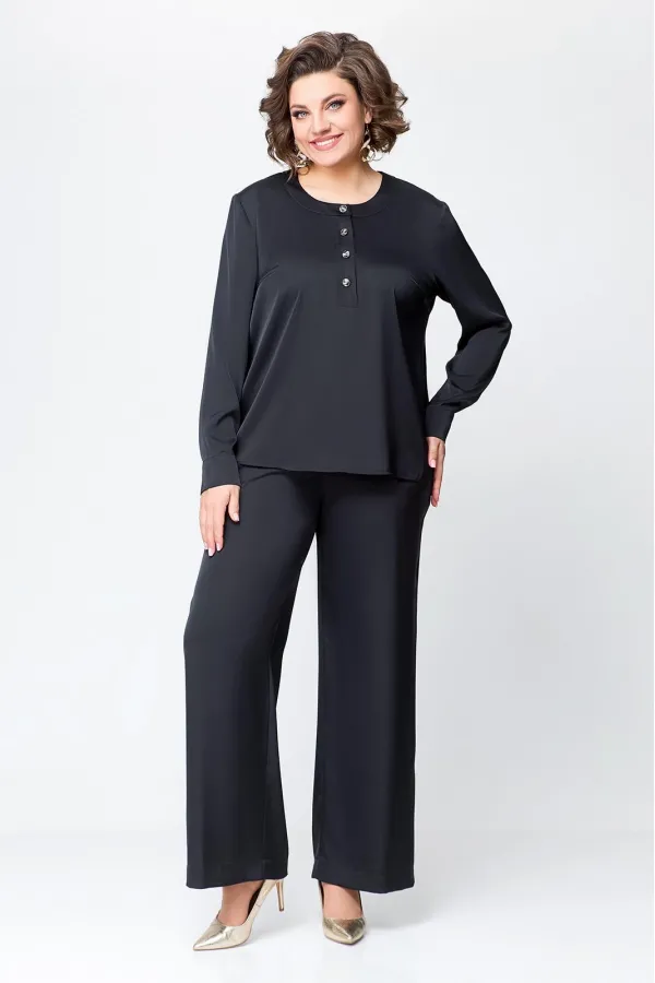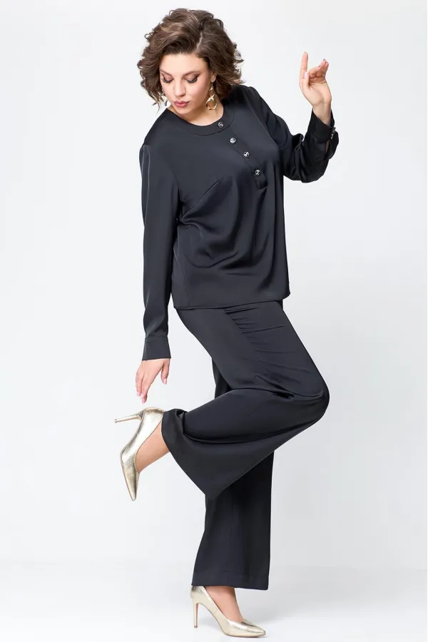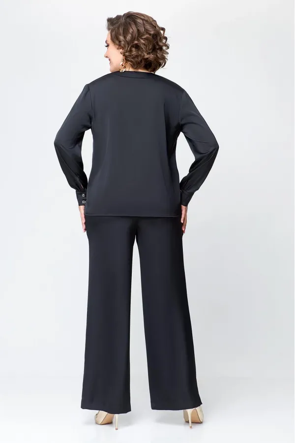 Костюм женский, состоящий из брюк и блузы. Выполнен из плотного , струящегося сатина турецкого производства.Блуза прямого силуэта, с застежкой «поло» на 4 петли и пуговицы на ножке. На полочке расположены нагрудные вытач... Читать далее...