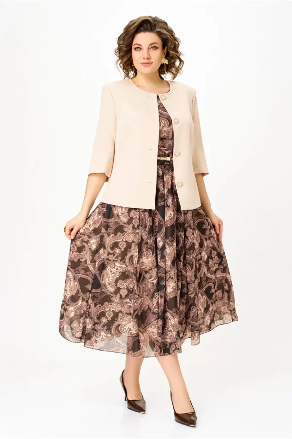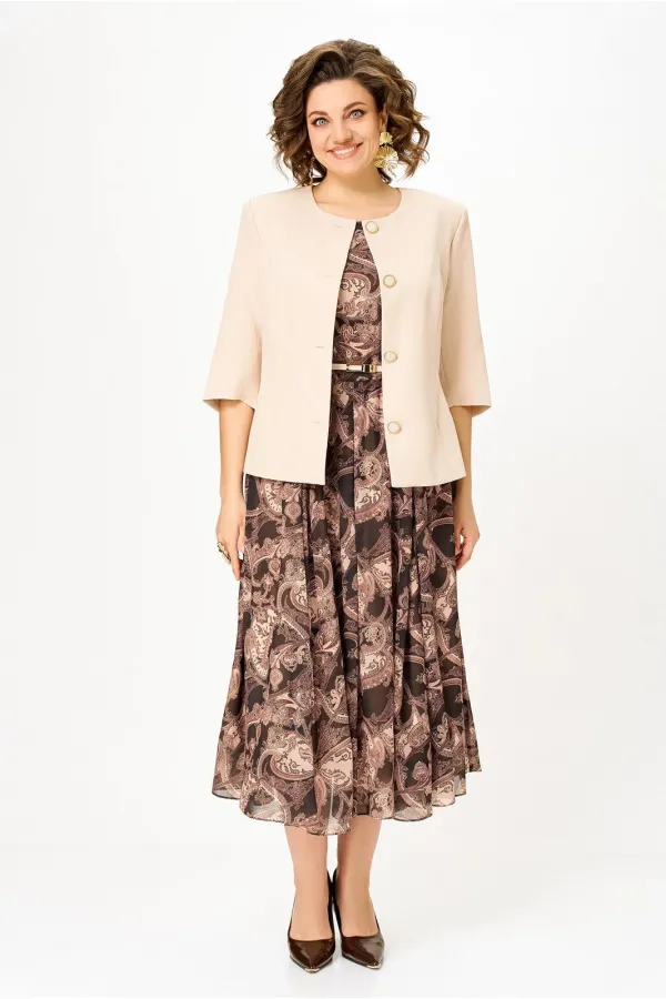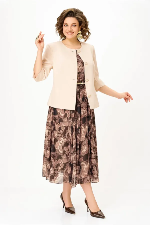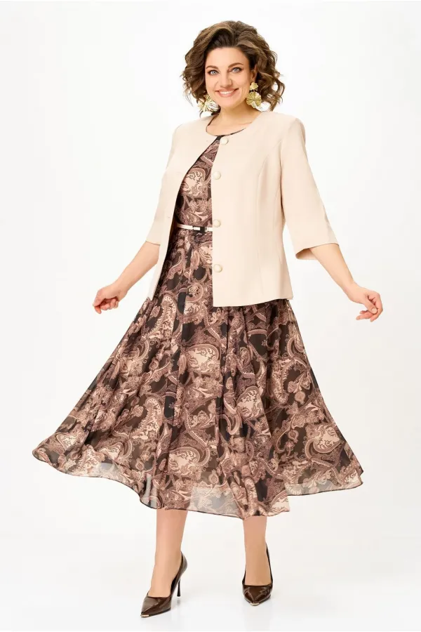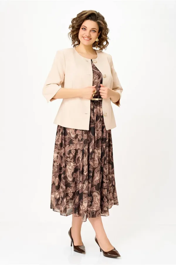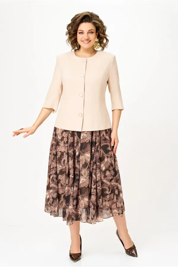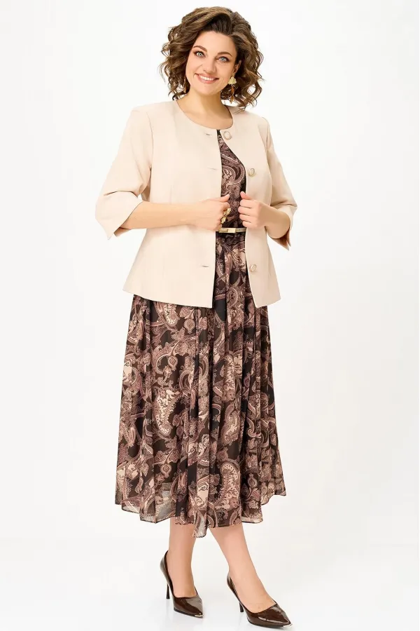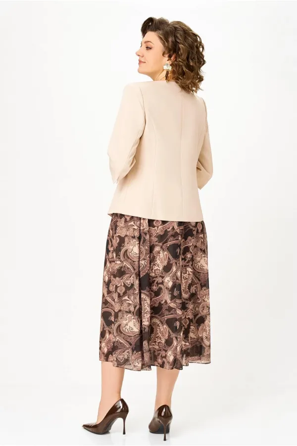 Комплект 2-х предметный, состоящий из жакета однотон из поливискозной ткани и платья в принт из нежного шифона мимоза.