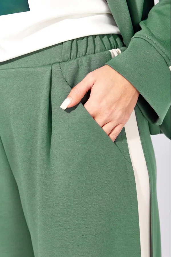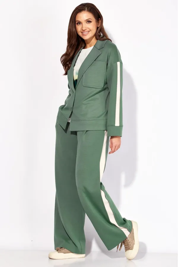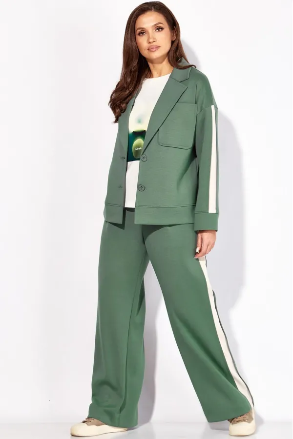 Комплект женский, 3х предметный, состоящий из жакета, топа и брюк. Жакет и брюки выполнены из трикотажного полотна T E N S E L, топ-хлопковый трикотаж (кулирка). Жакет прямого силуэта с длинным рукавом. Рукав со спущенно... Читать далее...