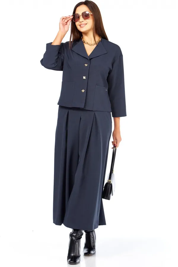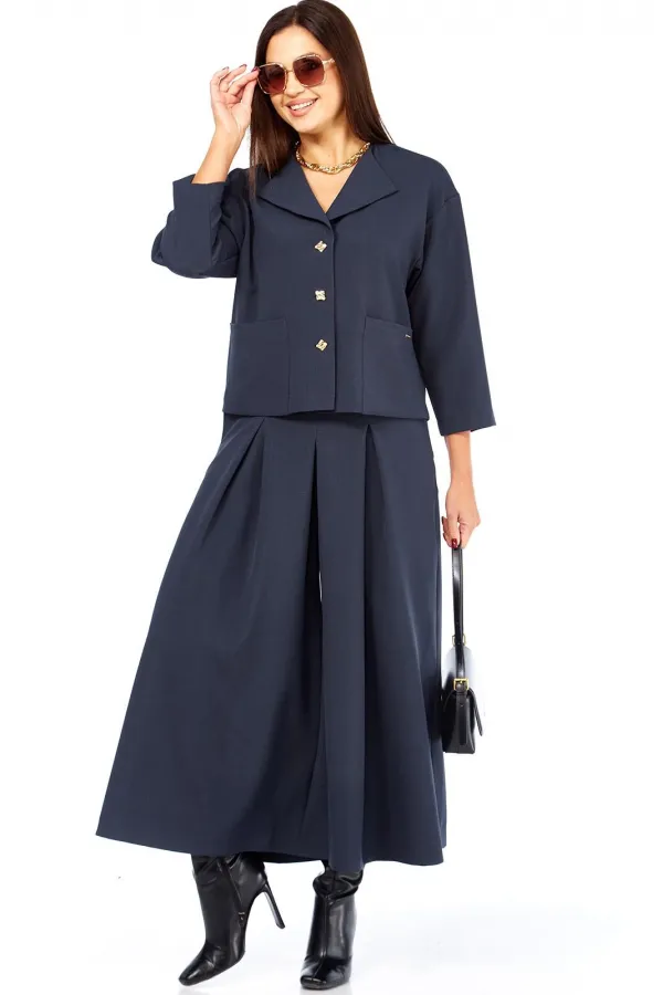Очень стильный, элегантный, модный женский комплект, состоит из юбки-брюк ( кюлоты ) и жакета, с интересным воротником , с дорогой фурнитурой, накладными карманами с лейбой золотистого цвета. Очень интересный фасон кюлот... Читать далее...