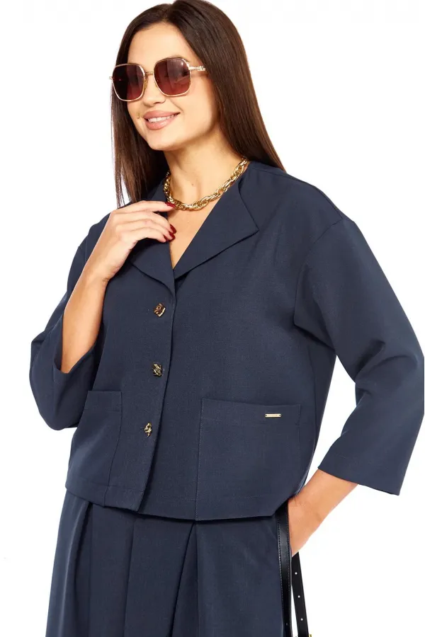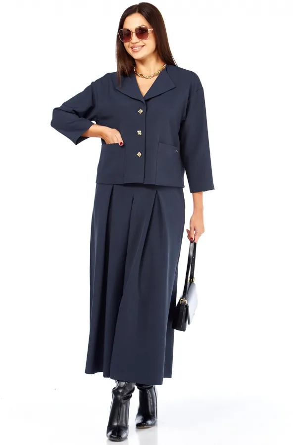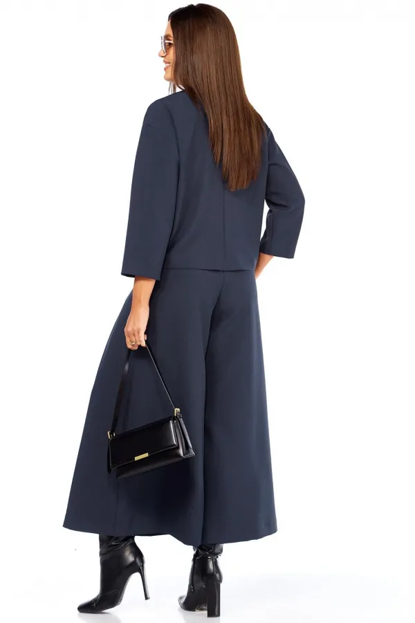 Очень стильный, элегантный, модный женский комплект, состоит из юбки-брюк ( кюлоты ) и жакета, с интересным воротником , с дорогой фурнитурой, накладными карманами с лейбой золотистого цвета. Очень интересный фасон кюлот, с хорошей посадкой, с первого взгляда похожи на юбку. Длина кюлот - 93 см. Пояс со шлевками и на резинке сзади. Длина жакет р. 46-50 (57 см) , в . 52-54 (59 см).
