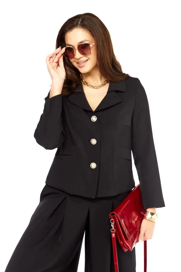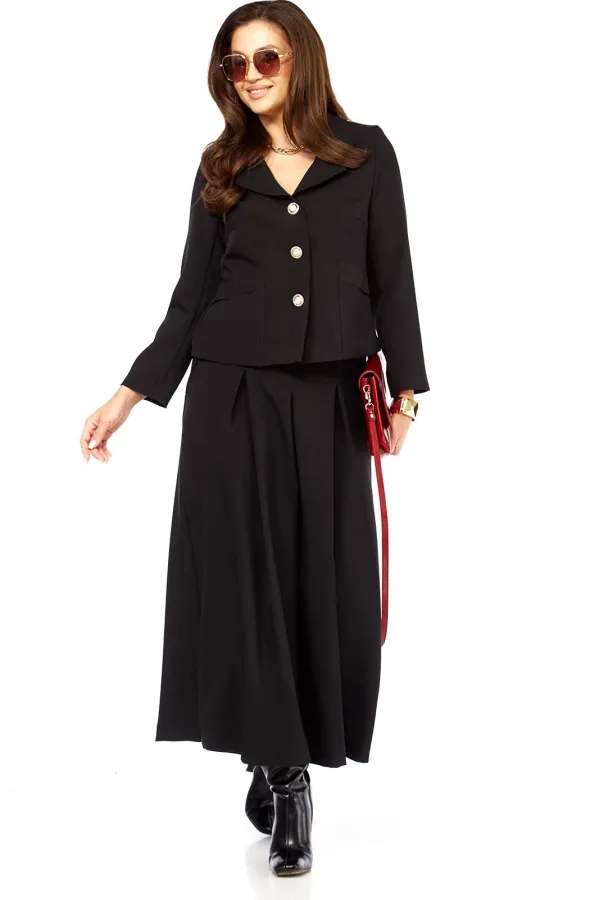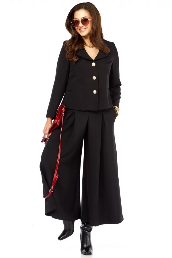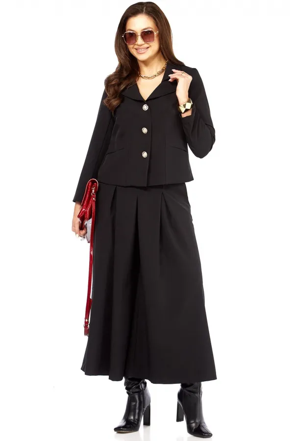 Стильный элегантный интересный женский комплект. Состоит из юбки- брюк ( кюлоты) и жакета. Жакет с интересным дизайном воротника, накладными карманами оригинального дизайна. Рукав длина — 58 см. Длина жакета от плеча по ... Читать далее...