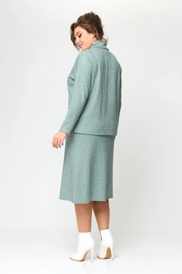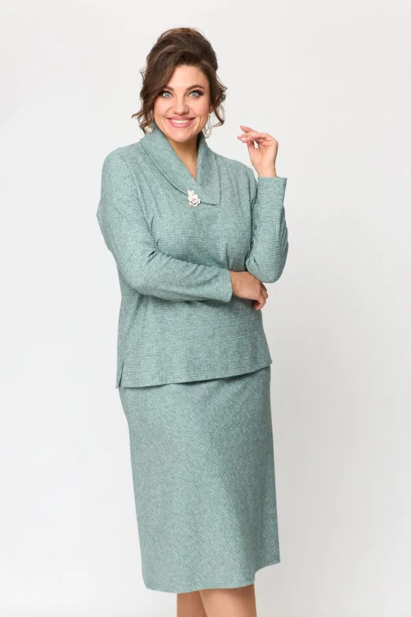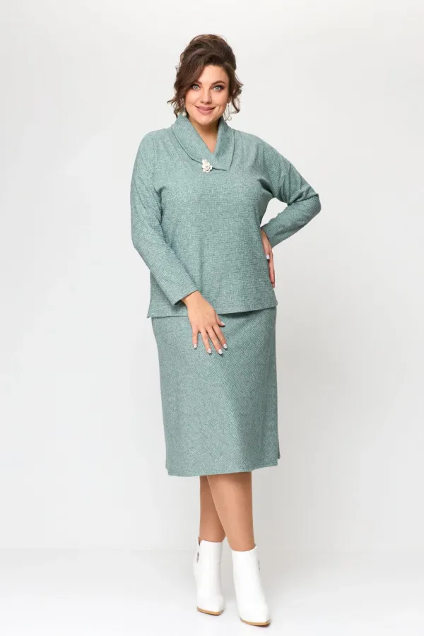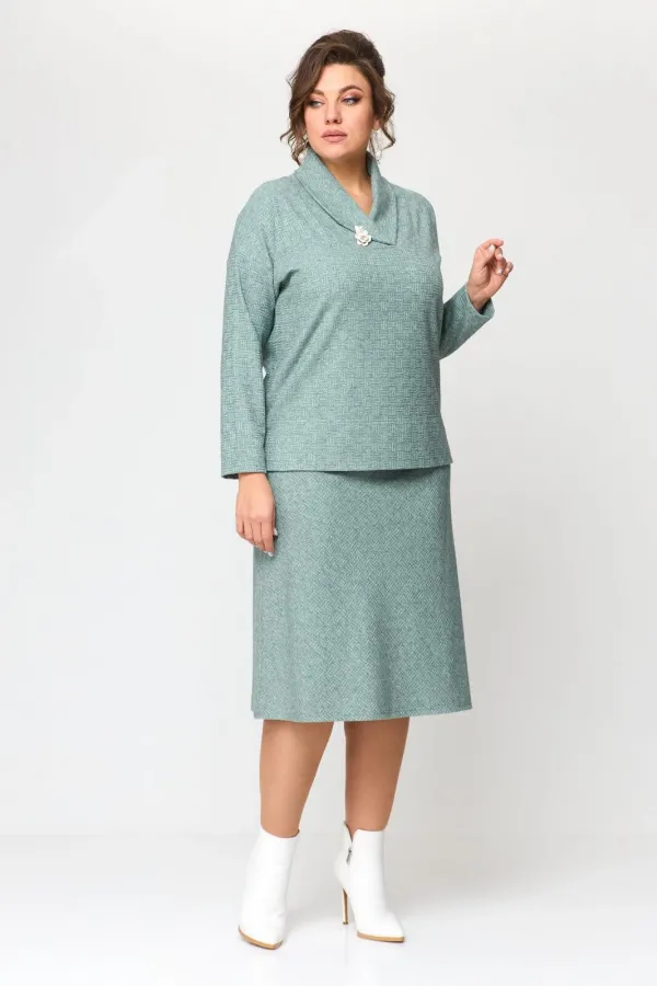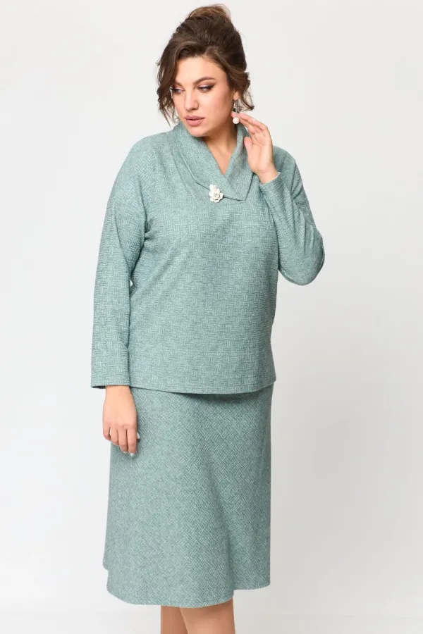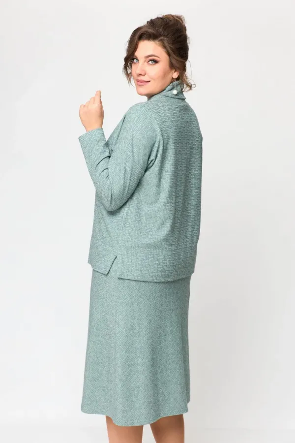 Удобный комплект из мягкого «структурного» трикотажного полотна в нежных тонах.Уютный джемпер свободного силуэта. Воротник с глубоким запахом и складкой переходит в планку на груди. Рукав зауженный длинный. По бокам невы... Читать далее...