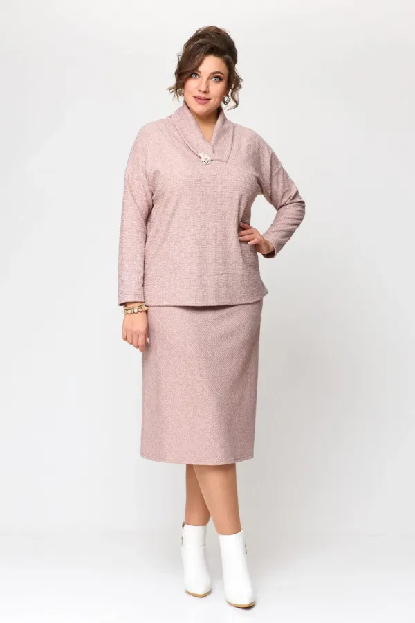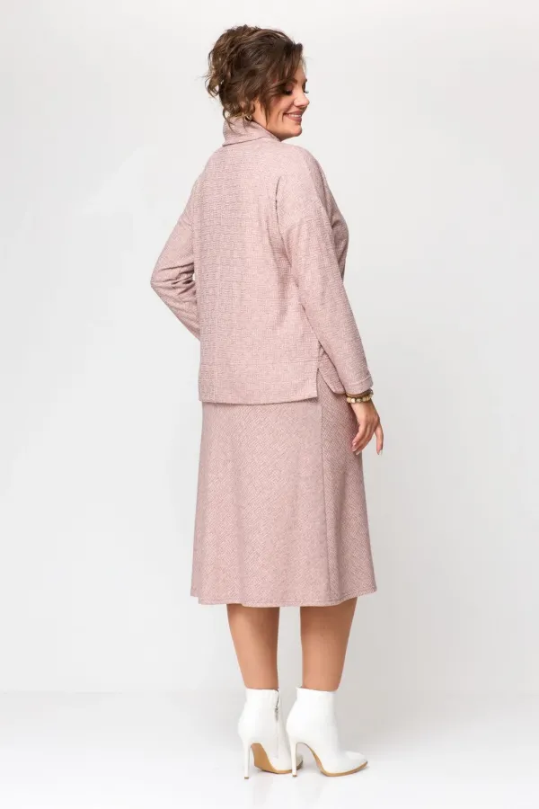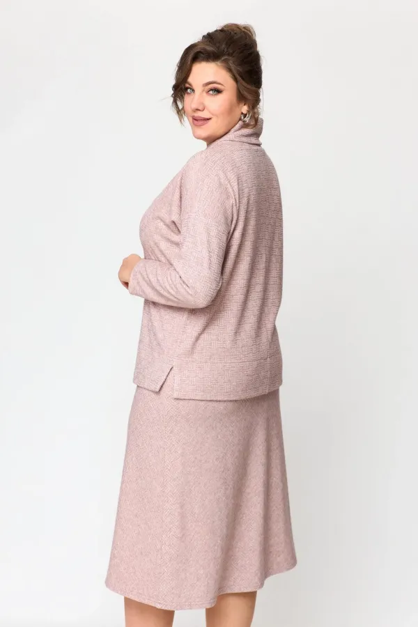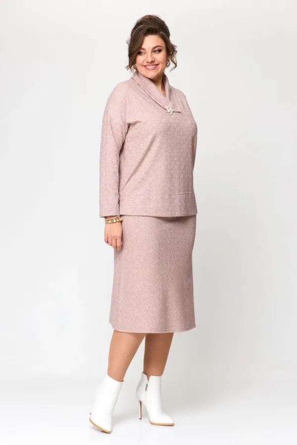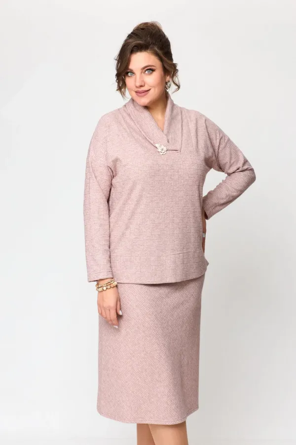 Удобный комплект из мягкого «структурного» трикотажного полотна в нежных тонах.Уютный джемпер свободного силуэта. Воротник с глубоким запахом и складкой переходит в планку на груди. Рукав зауженный длинный. По бокам невы... Читать далее...