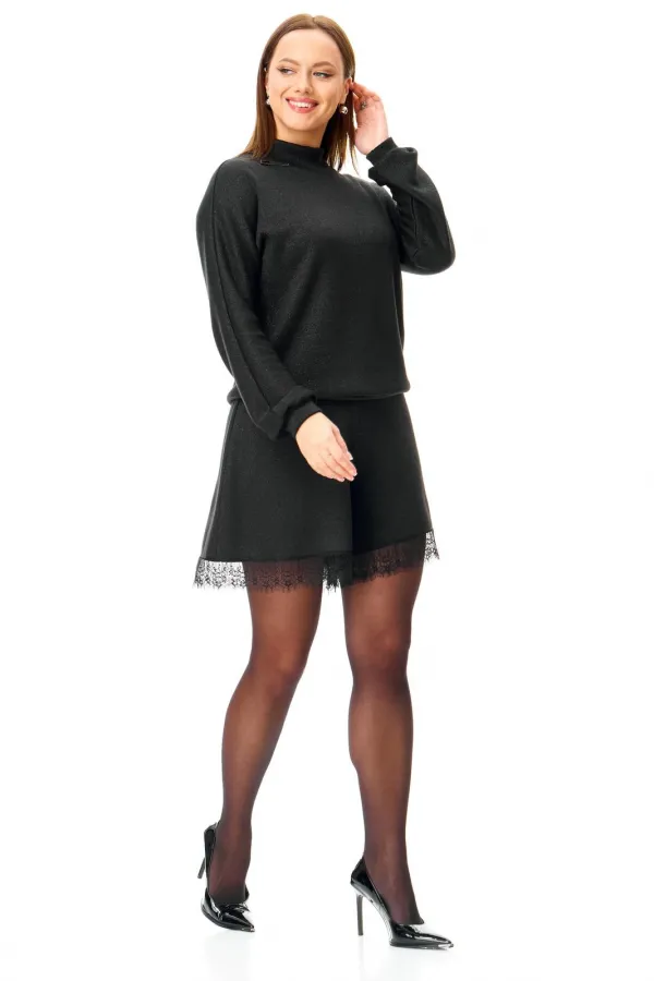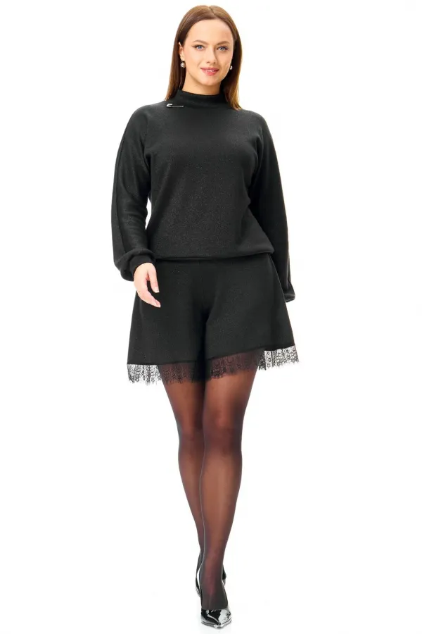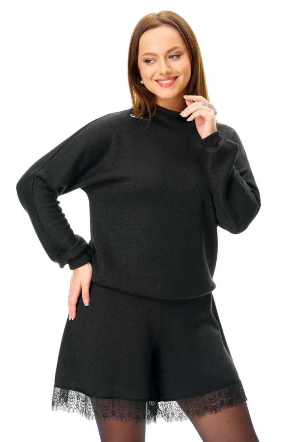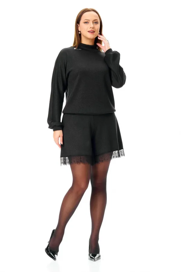 Джемпер, шорты.Ворвемся в Новый год!Классический черный трикотаж с легким блеском.Джемпер свободного силуэта из однотонного трикотажного полотна с неярким блеском «люрекс». Горловина с невысокой «стойкой». Рукав цельно... Читать далее...