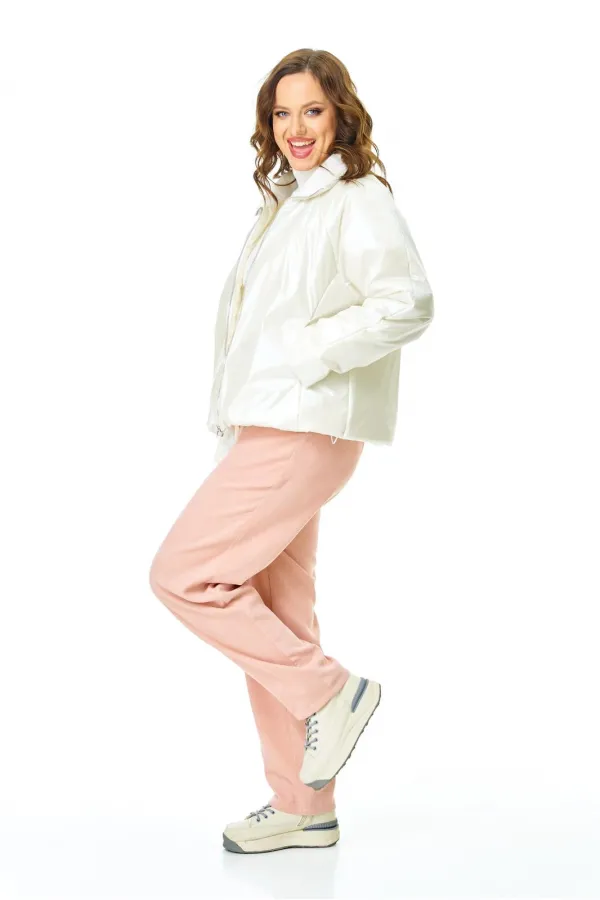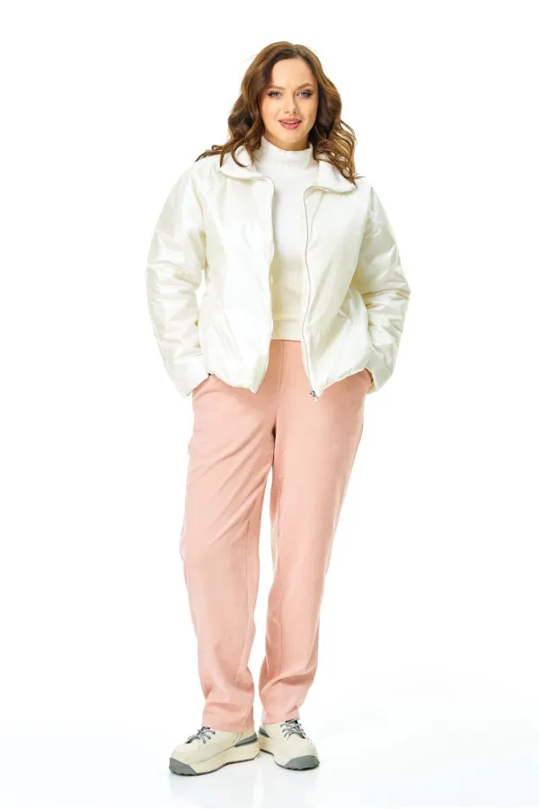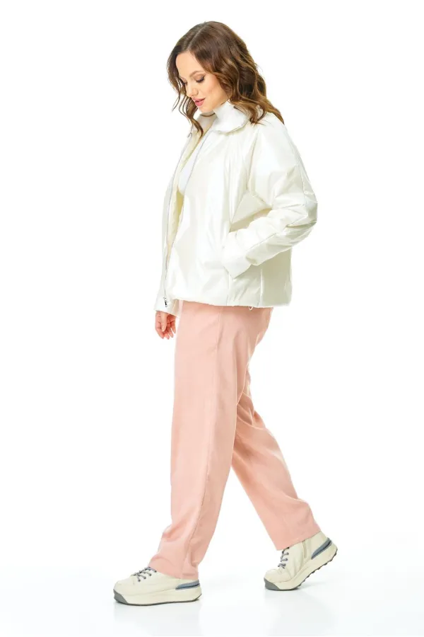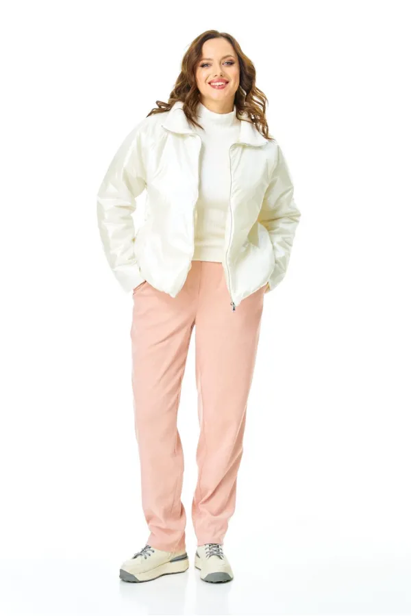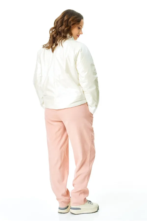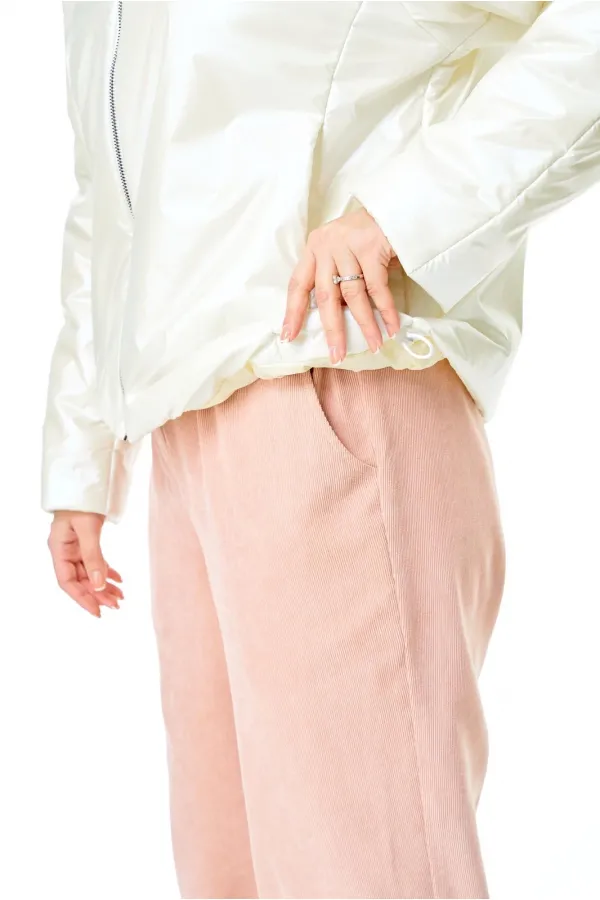 Комплект для ранней весны из легкой курточки и брюк из бархатистого микро-вельвета в нежном цвете.