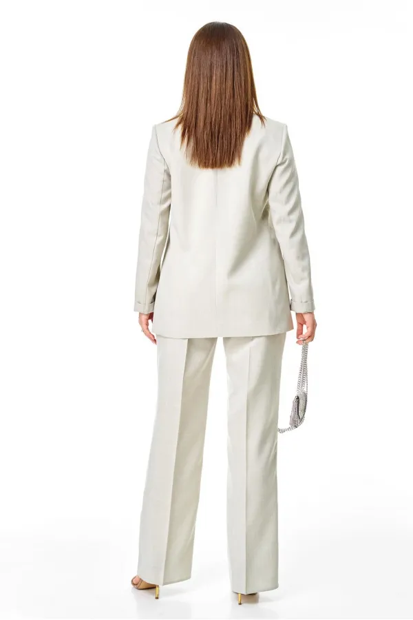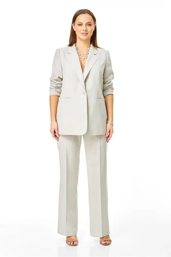 Облегченный классический костюм состоит из жакета и брюк. Выполнен из полунатуральной ткани (подкладка 100% хлопок).