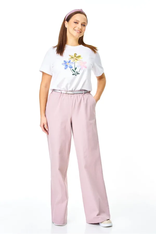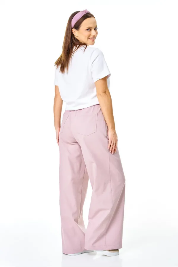Брюки с высокой посадкой на талии прямые к низу, с глубокими карманами, по поясу резинка. Без застежки.