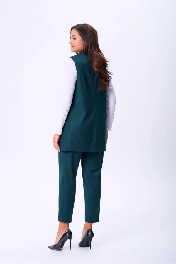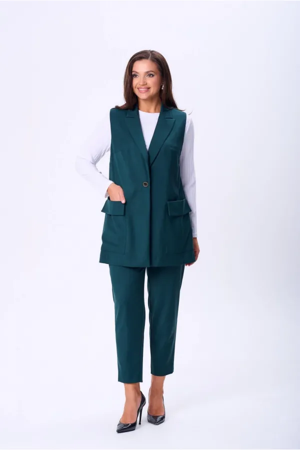 Комплект женский тройка состоит из жилета и брюк, выполнены из плательно-костюмной ткани, и лонгслива из трикотажного полотна «лапша». Жилет прямого силуэта, по переду центральная застежка на петлю и пуговицу, накладные ... Читать далее...