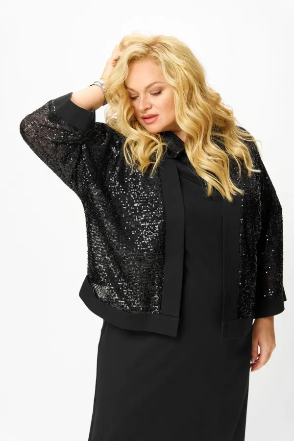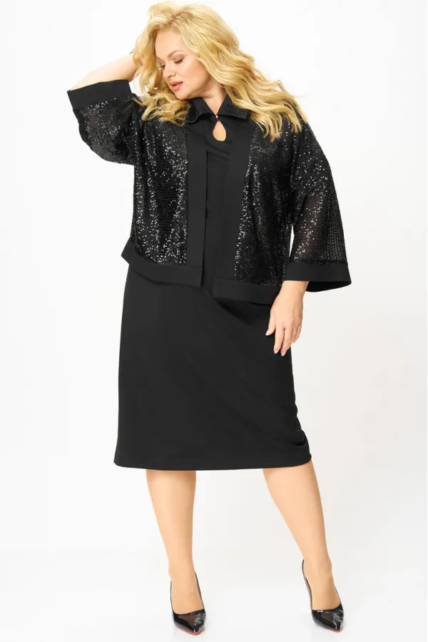 Комплект состоит из лаконичного платья миди и стильного болеро вечернего с пайетками. Комплект станет ярким акцентом Вашего гардероба и добавит уверенность в себе на любом мероприятии, будь то свадьба, выпускной вечер, новогодний корпоратив.