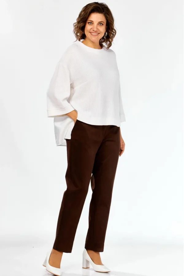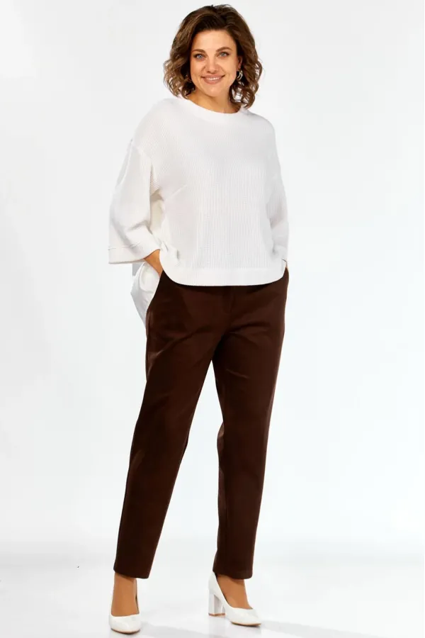 Комплект женский свободного силуэта, джемпер женский тонкий+ брюки замшевые женские.Кофта женская белая, праздничная изготовлена из вязаной, приятной, качественной мягкой ткани. По переду джемпера нагрудные вытачки, пере... Читать далее...