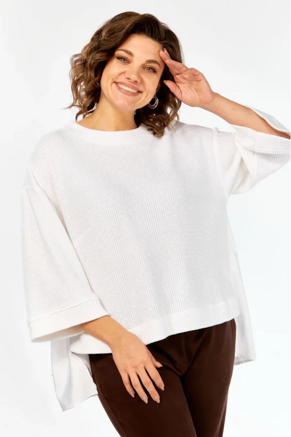 Кофта женская белая, праздничная изготовлена из вязаной, приятной, качественной мягкой ткани.