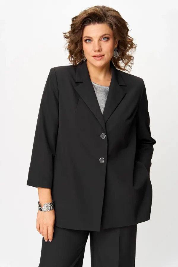 Костюм женский двухпредметный, состоящий из жакета и брюк. Жакет полуприлегающего силуэта, удлиненный, с центральной бортовой застежкой на 2 петли-пуговицы до линии перегиба лацкана. Перед с нагрудными вытачками, выходящ... Читать далее...