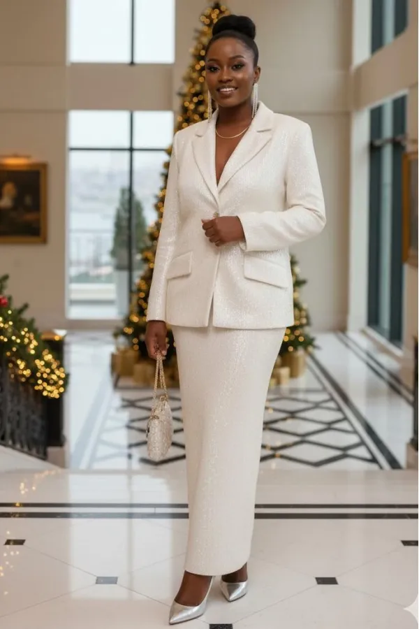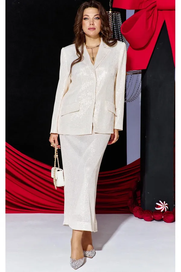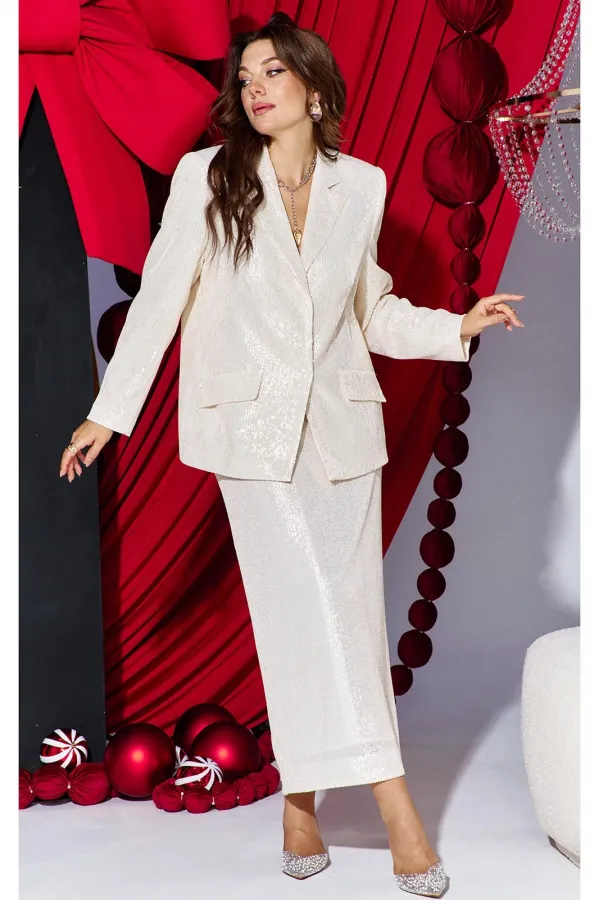 Это не просто женский юбочный костюм — это будто вторая кожа, сотканная из ночных огней и лунной пыли. Пайетки, бесчисленные и плотно прилегающие друг к другу, словно чешуя диковинной рыбы, не просто сверкали. Они жили с... Читать далее...