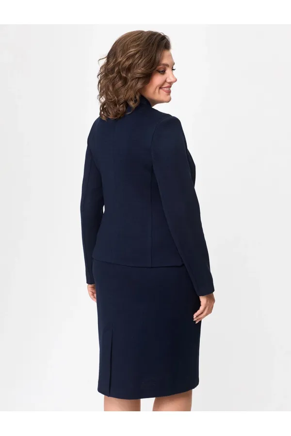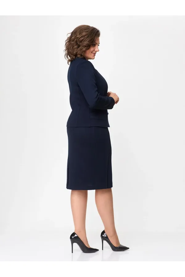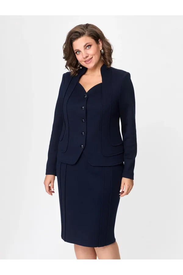 Женский повседневный костюм, состоящий из жакета и юбки. Выполнен из трикотажного полотна с шерстью (30% натуральная шерсть, 70% пан) собственного производства. Жакет полуприлегающего силуэта. Декоративные рельефы по переду жакета и юбки. Рукав втачной. По спинке средний шов, рельефы. Застежка на пуговицах. Спереди на подкладке. Юбка прямого силуэта на подкладке. В поясе, по бокам от вытачки до вытачки с эластичной лентой. На заднем полотнище юбки средний шов со шлицей и застежкой на пуговицу и молнию. Пуговицы могут отличаться от представленных на фото. Костюм хорошо подойдет для работающих в сфере образования и офисных работников. При подборе необходимого размера, используйте таблицу обмерных данных в готовом виде. Чтобы перейти в общий каталог моделей, нажмите на иконку бренда в карточке товара. Все изделия производятся в Республике Беларусь на собственной фабрике. Мы будем рады вашим отзывам и рекомендациям, благодаря им мы становимся лучше! Спасибо, что выбираете Zlata!