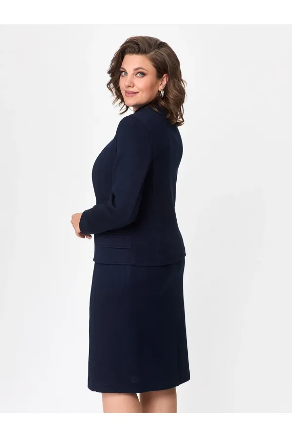 Женский повседневный костюм, состоящий из жакета и юбки. Выполнен из трикотажного полотна с шерстью (30% натуральная шерсть, 70% пан) собственного производства. Жакет полуприлегающего силуэта. Декоративные рельефы по пер... Читать далее...