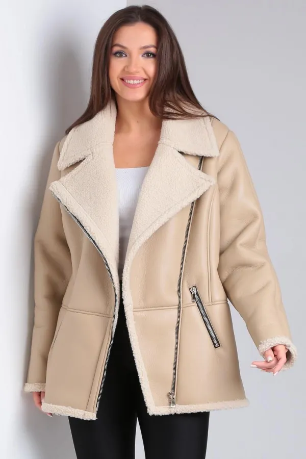Дубленка женская короткая от Celentano. Выполнена из легкой экокожи с меховой изнанкой.