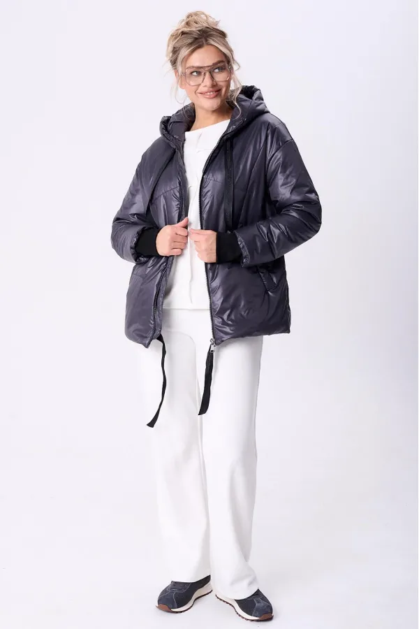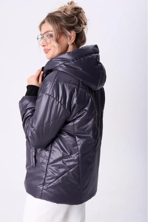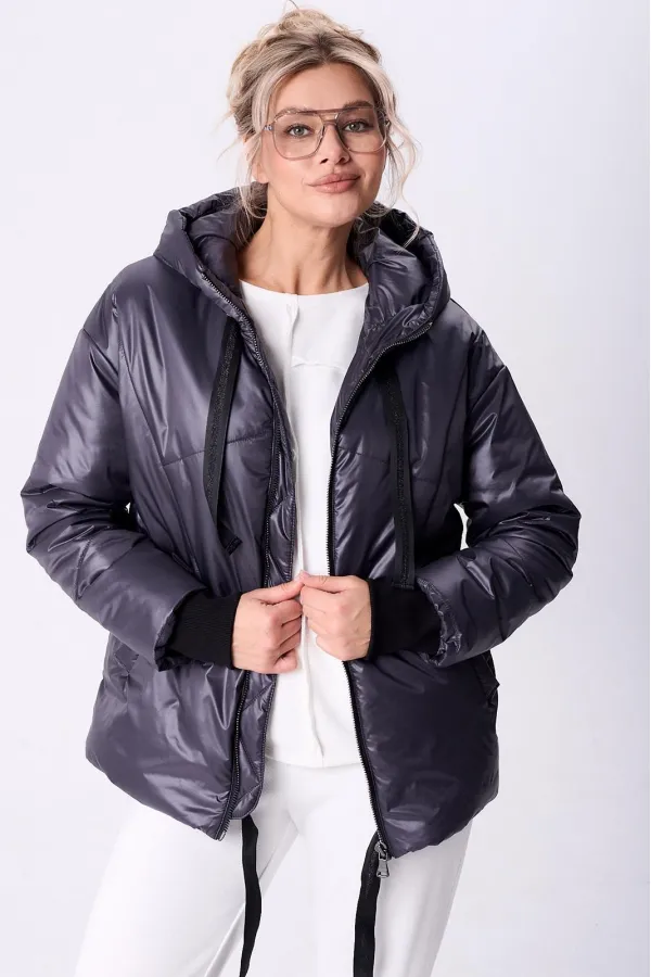 Куртка женская свободного облегания с застежкой на молнию. Спинка с фигурной стежкой. Перед с фигурной стежкой и боковыми прорезными карманами с листочкой. Воротник-капюшон с центральной и боковыми частями с кулисой, шну... Читать далее...
