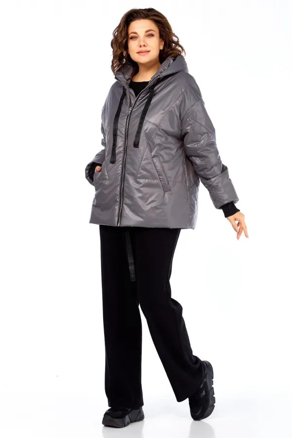 Куртка женская свободного облегания с застежкой на молнию. Спинка с фигурной стежкой. Перед с фигурной стежкой и боковыми прорезными карманами с листочкой. Воротник-капюшон с центральной и боковыми частями с кулисой, шну... Читать далее...