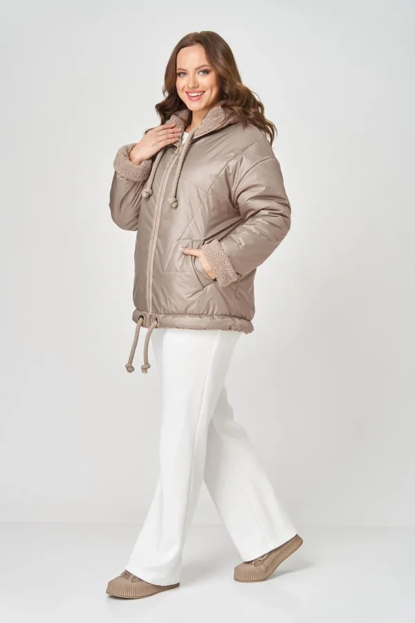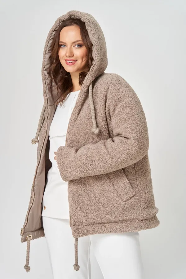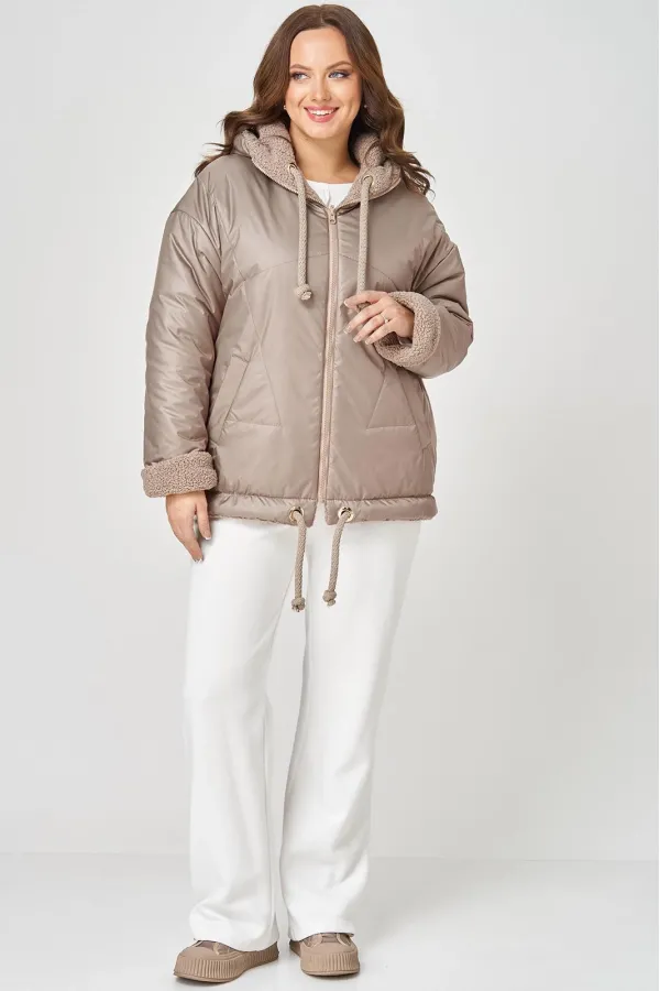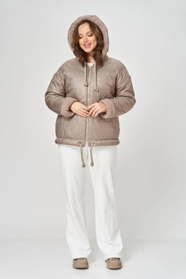 Куртка женская с центральной застёжкой на тесьму-молнию. Двусторонняя. Линия плеча спущена. Рукав втачной одношовный. По переду прорезные карманы с листочкой. Капюшон с центральной частью , по отлету-кулиса. По низу изде... Читать далее...