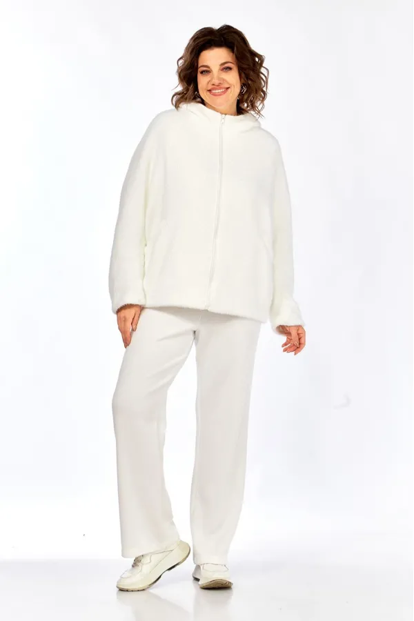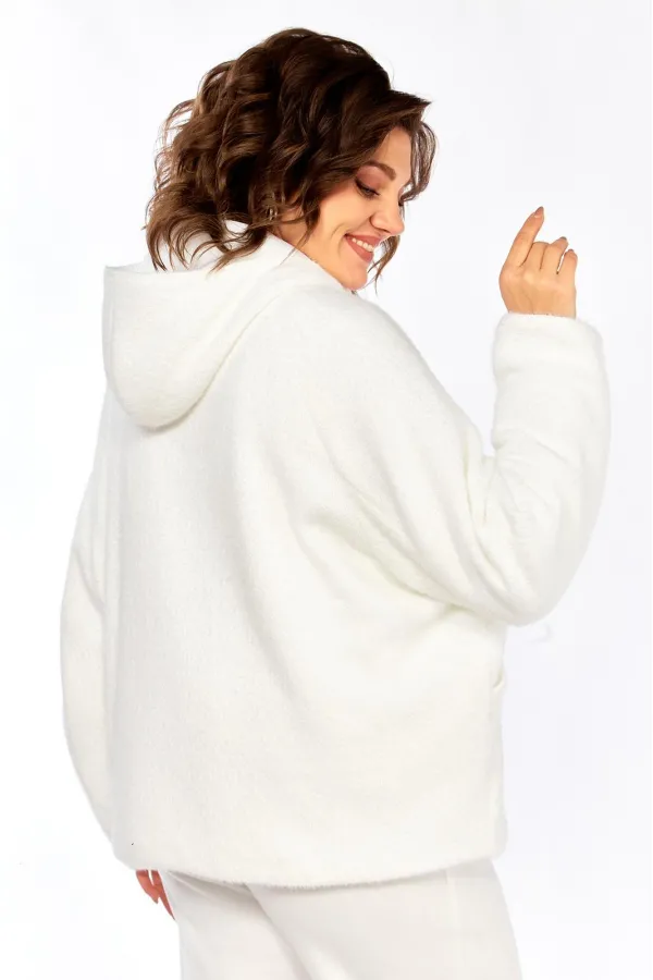 Куртка женская, О-образного силуэта с центральной застежкой на молнию. Спинка простая. Перед с боковыми карманами с листочкой. Рукав-реглан . Воротник-капюшон. По низу куртки в подкладке обработана кулиса со шнуром и регулятором. Температурный режим до 0 градусов.