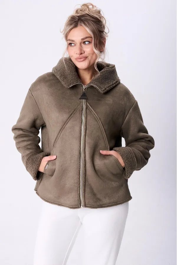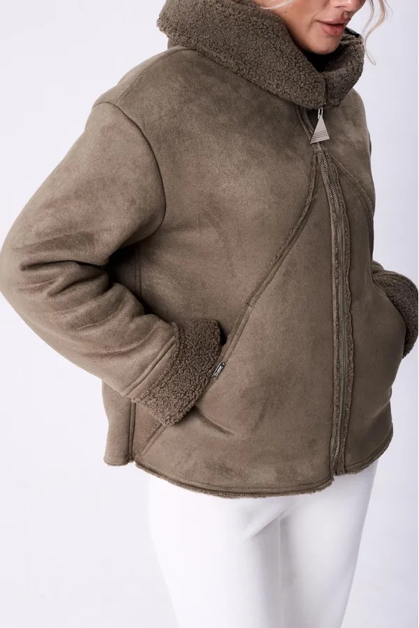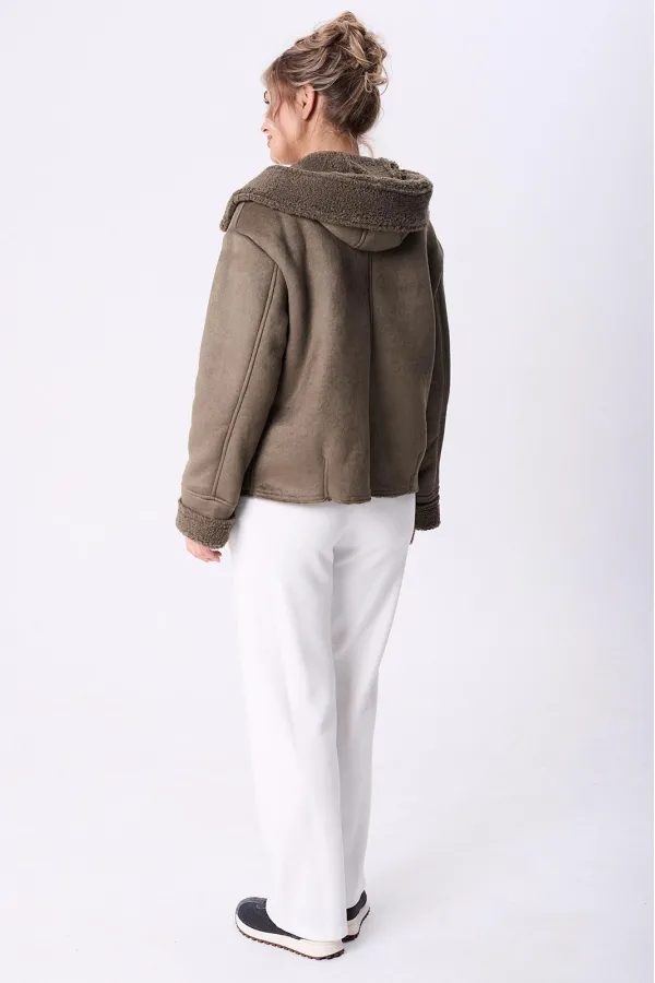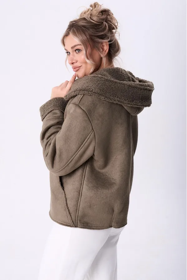 Кардиган женский полуприлегающего силуэта с центральной застежкой на тесьму-молнию. По спинке средний шов, вытачки по горловине. По переду накладные карманы фигурной формы. Рукав втачной 2-шовный с притачным манжетом, спущенная линия плеча. Капюшон с центральной частью и отрезной отделочной деталью по отлету. В качестве отделки используется фурнитура. Длина по спинке 60 см. Длина рукава 62 см.