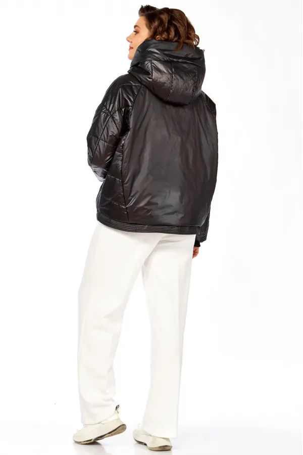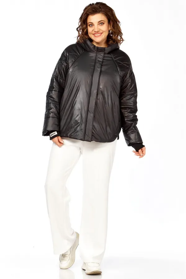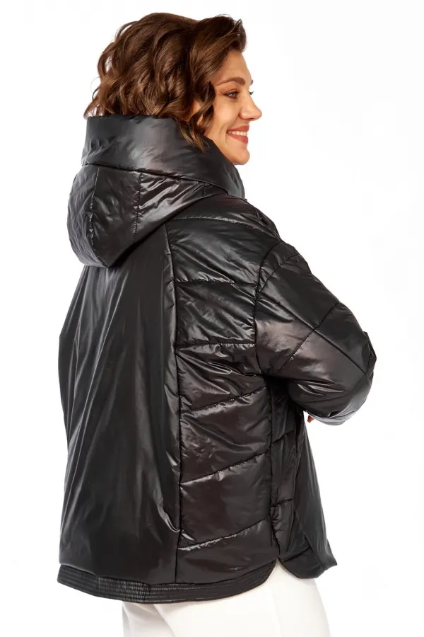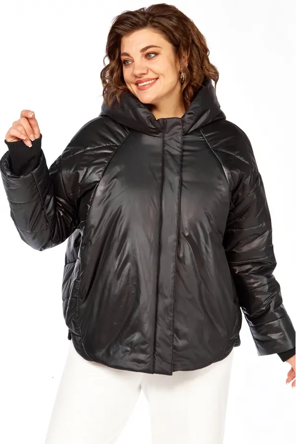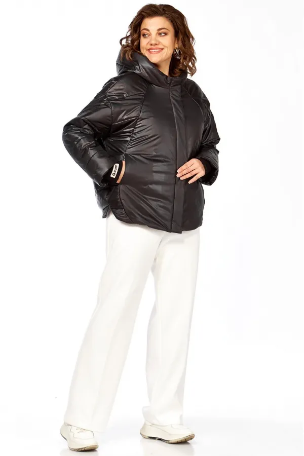 Куртка женская с центральной застежкой на тесьму-молнию и кнопки, спущенная линия плеча. По спинке рельефные швы от горловины до низа, по низу притачная отделочная планка. По переду рельефные швы от горловины до низа, в рельефных швах обработаны карманы. рукав втачной одношовный с манжетом по низу. Капюшон с центральной частью и отделочной деталью по отлету. Утеплитель синтепон 150 гр.Длина по спинке 70 см, длина рукава 54 см.