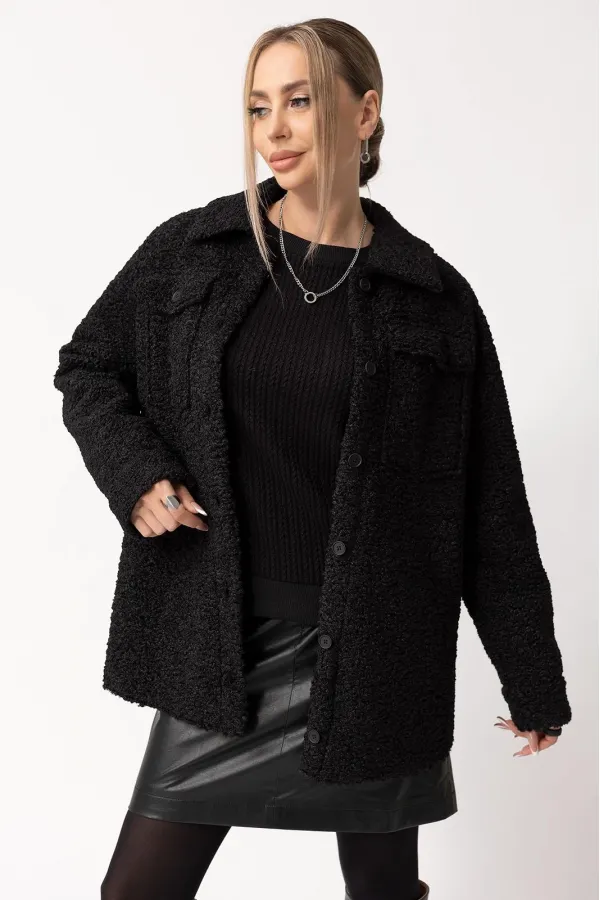 Куртка с центральной застежкой на петли и пуговицы по переду, втачным воротником. По переду накладные карманы с клапанами. Спинка цельная. Низ куртки фигурный.