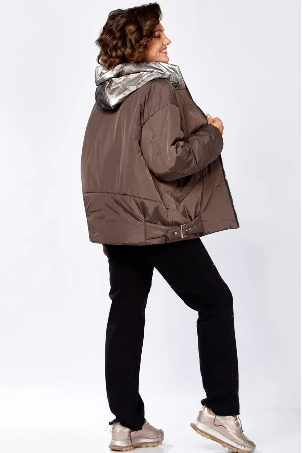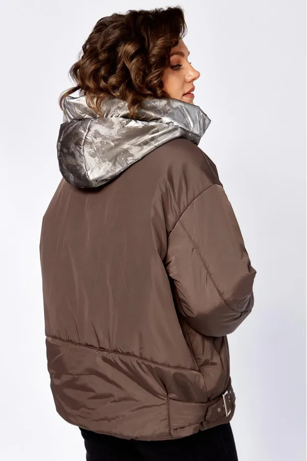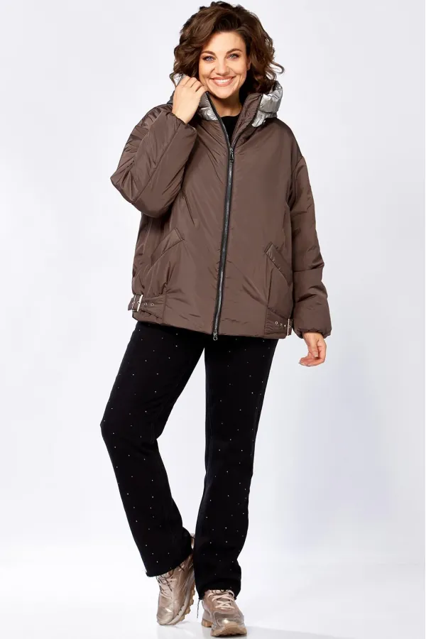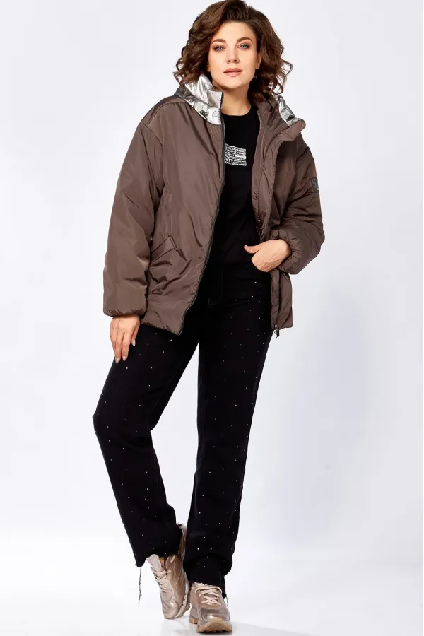 Куртка выполнена в стиле активной зимней одежды, сочетая практичность с элементами модного дизайна. Черный цвет с серебристым отливом капюшона придает изделию элегантный вид. Строгий, но при этом уютный силуэт куртки обеспечит комфорт. Молнии и другие металлические элементы придают ей спортивный и стильный акцент, а утеплитель синтепон 150 г./м.кв. создает необходимое тепло без лишнего объема.