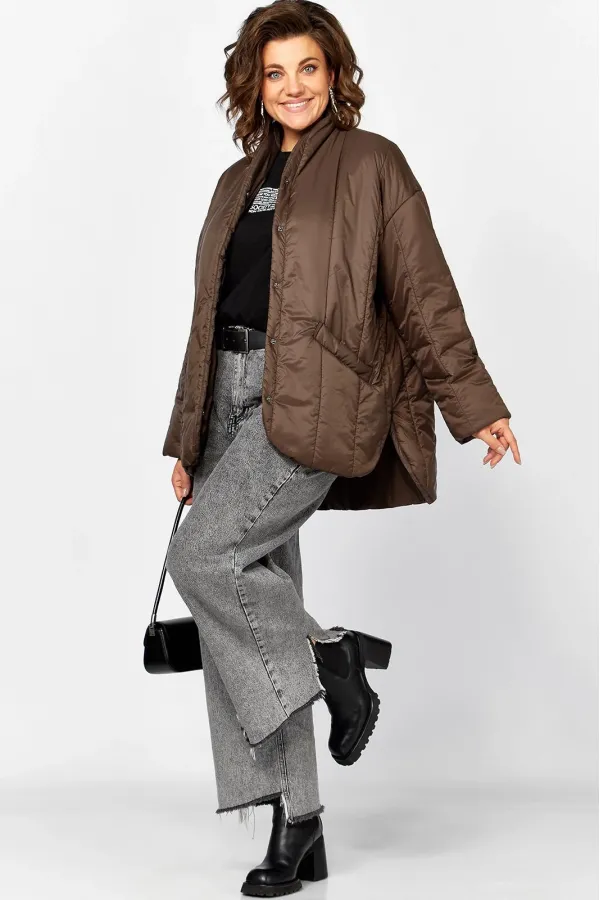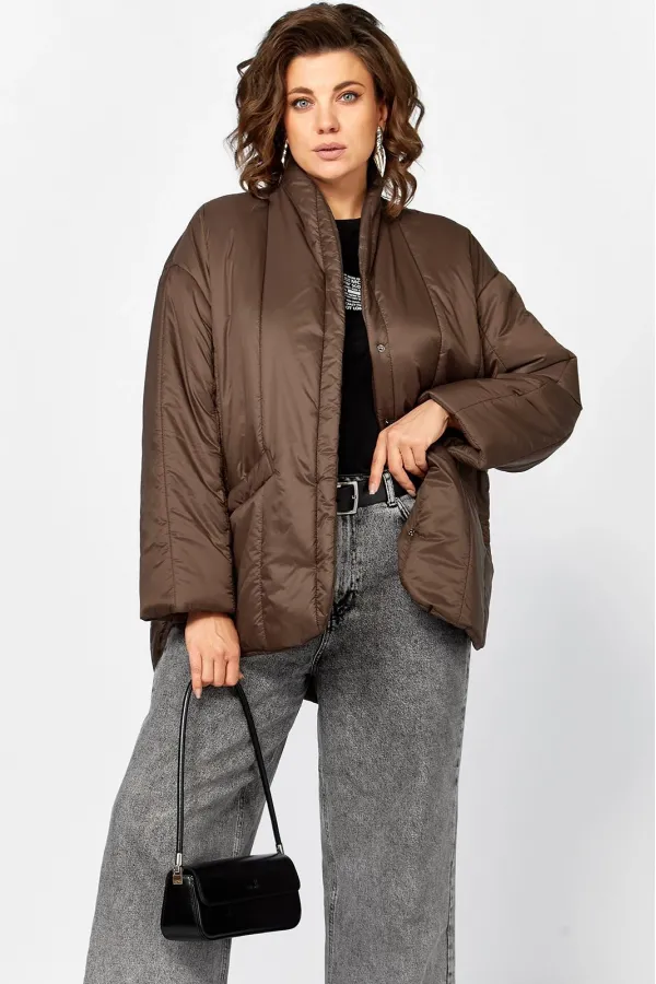 Демисезонная стеганая куртка из лакке ,на утеплителе синтепон 150 гр /и ветрозащитной подкладке барьер в современном минималистично стиле сочетает в себе функциональность и изящество . Прямой свободный силуэт со слегка оверсайз -эффектом разноуровневый низ с мягким закруглением, вертикальная стежка визуально вытягивает фигуру, диоганальные линии карманов создают динамику и оригинальность . Мягкий цельнокроеный воротник стойка защищает шею от ветра , скрытая застежка на кнопки придает изделию лаконичность и универсальность в сочетании как с классическими брюками , так и с джинсами Модель идеально подходит для активного ритма жизни , создавая стильный и современный образ. Температурный режим от +5 до -10 градусов.Длина по спинке -78см