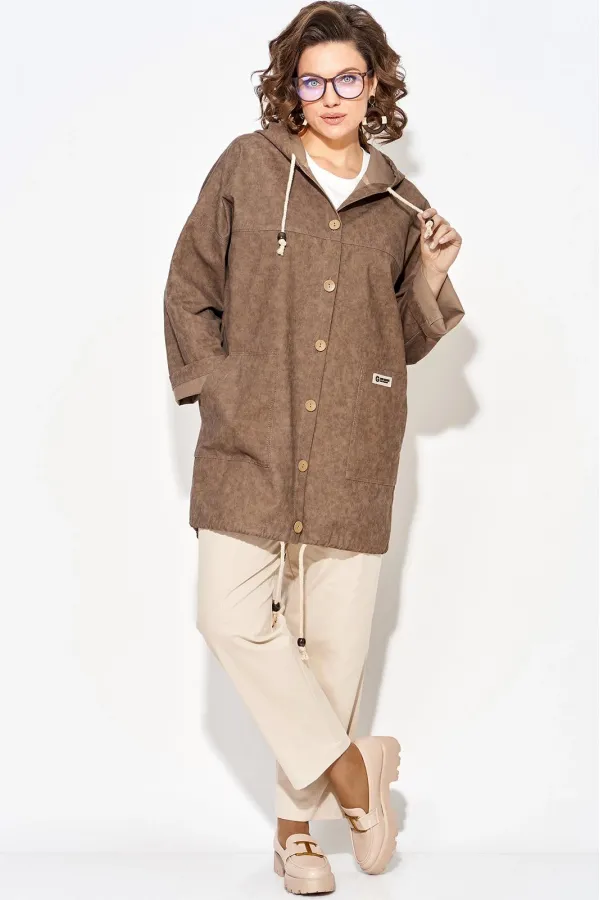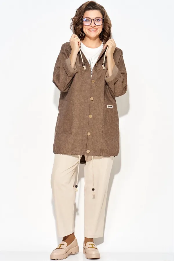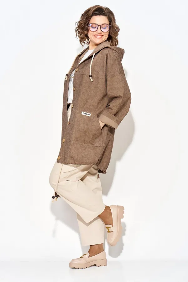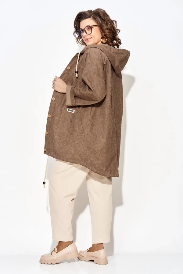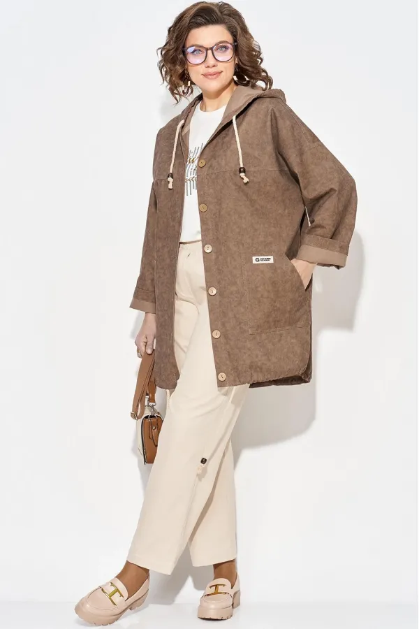 Женская джинсовая парка-ветровка, выполнена из 100% хлопка с эффектом водоотталкивающей пропитки. Удлиненная джин совка силуэта оверсайз очень практична и удобна, смотрится необычно и элегантно. Модель с объемным капюшоном является очень популярной в предстоящем сезоне. Застежка центральная на петли и пуговицы. Рукав длинный на спущенном плечевом поясе обеспечивает идеальную посадку по фигуре. По полочке расположена кокетка и накладные карманы с отделочными строчками. Спинка с центральным швом, переходящим в разрез. Низ изделия фигурный с утяжкой на шнуровку с наконечниками.