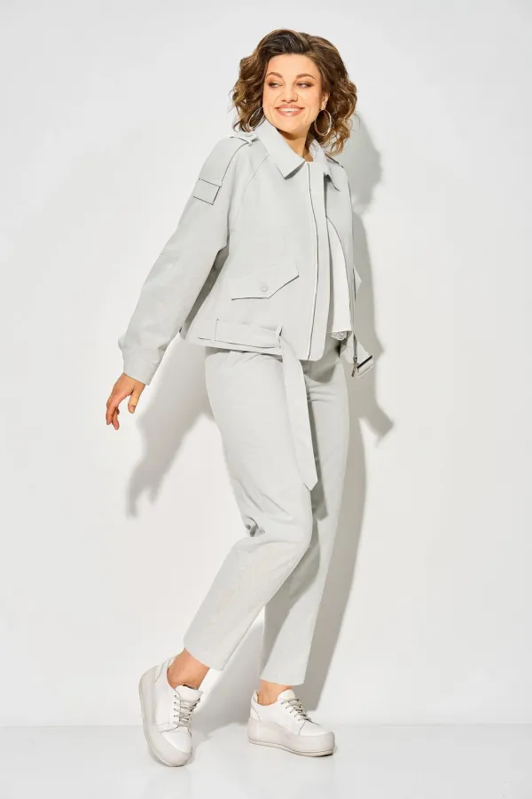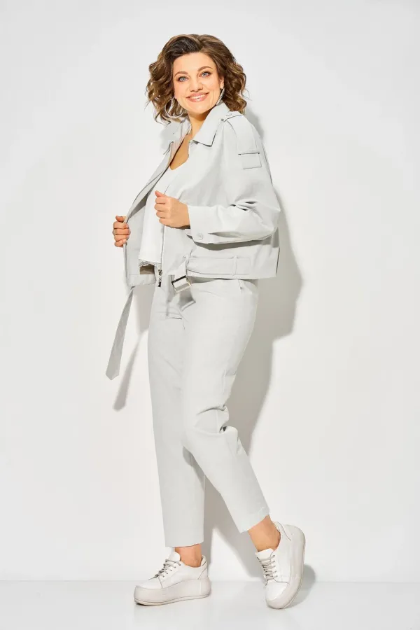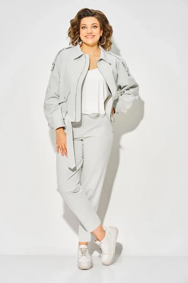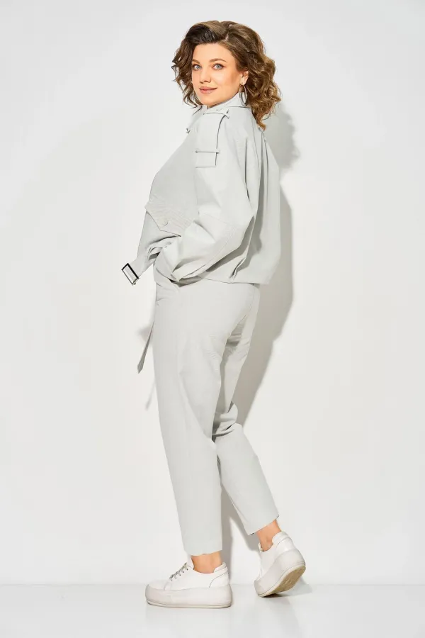 Модель силуэта оверсайз, с длинным свободным рукавом покроя реглан. Воротник отложной. Застежка центральная на молнию с дополнительной планкой. По полочке расположены прорезные карманы с клапаном. Рукав длинный, на притачной манжете с застежкой на пуговицу. Спинка с центральным швом, по низу заложены складки. По низу изделия, спереди расположен декоративный пояс с пряжкой для более комфортного прилегания. Модель на шелковой подкладке.
