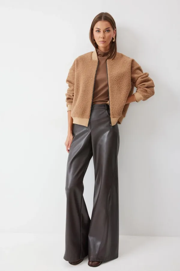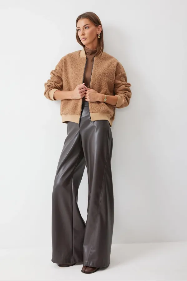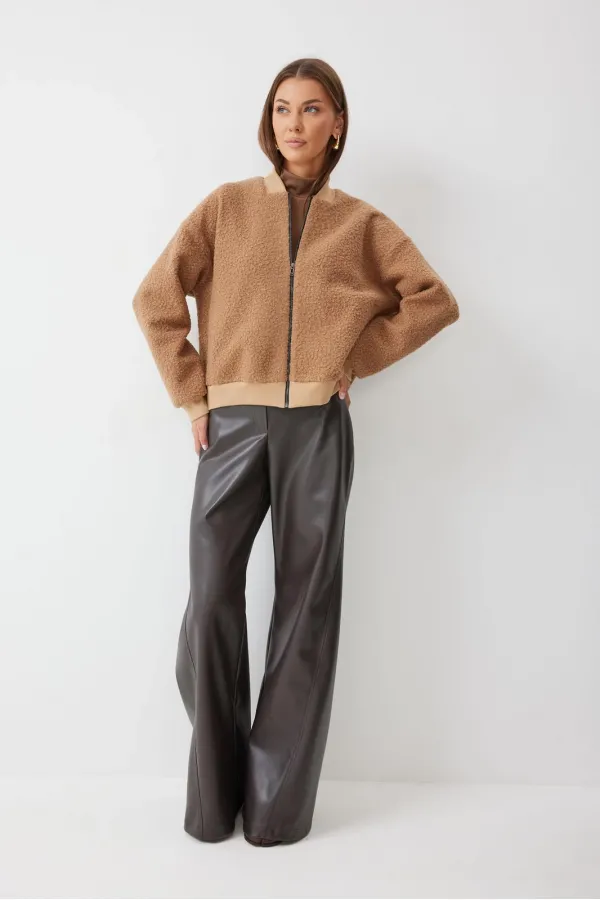 Жакет прямого силуэта из трикотажного полотна. Горловина-стойка, по центру застежка на молнию. Рукав со спущенной линией плеча, по низу манжета. По переду карманы с декоративными листочками. Жакет без подкладки. В компл... Читать далее...