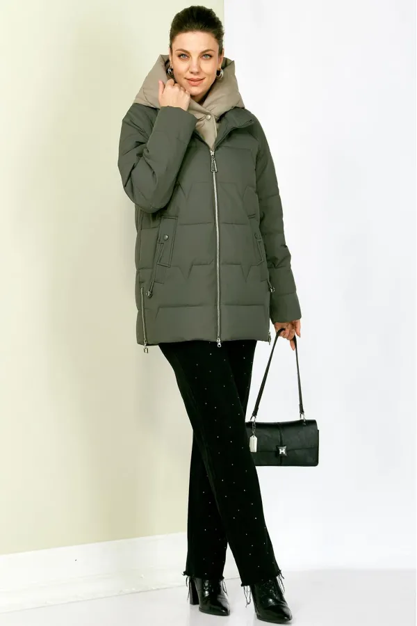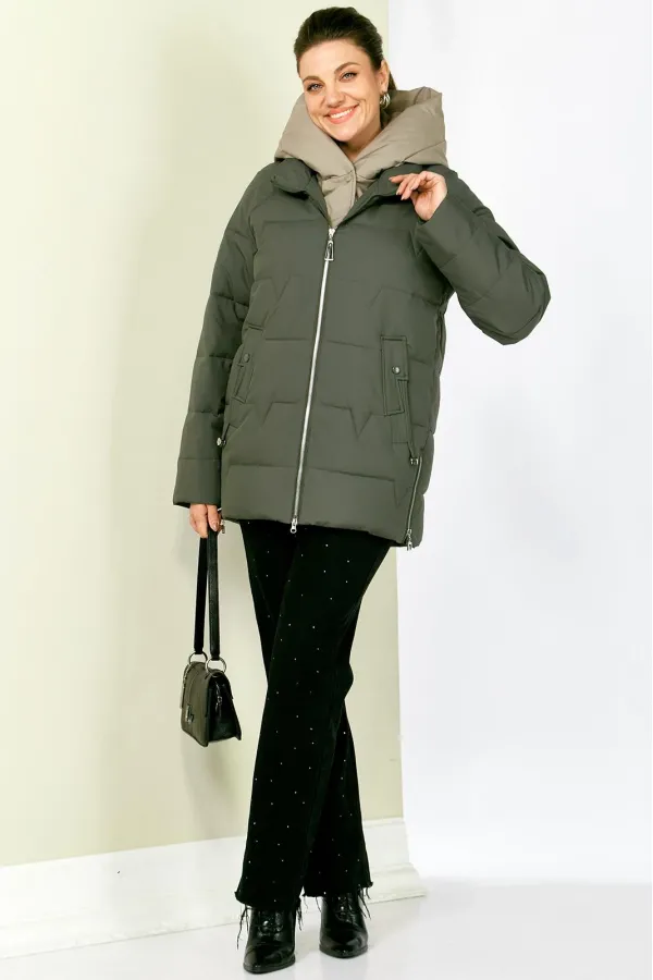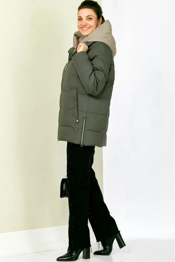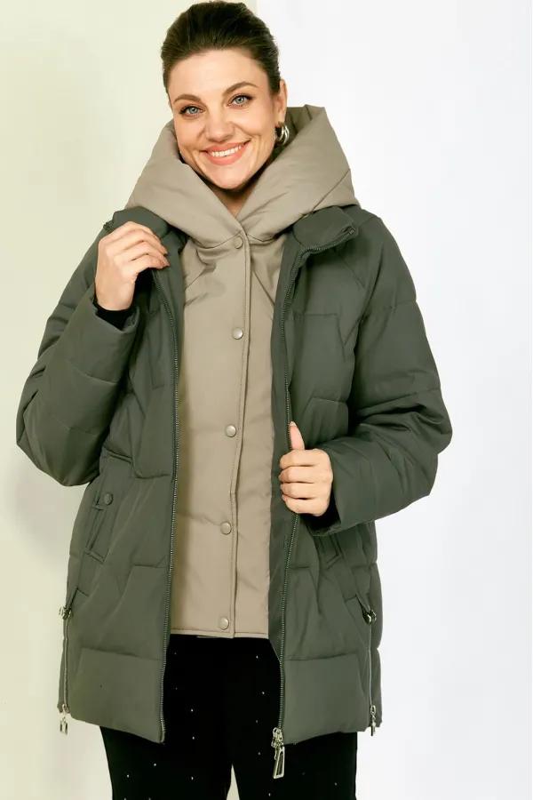 Зимняя стильная женская куртка станет идеальным дополнением гардероба в холодные дни. Выполнена из мягкой, матовой курточной ткани с водоотталкивающим эффектом. На качественной сатиновой подкладке из поливискозы. В качестве утеплителя используется «Холлофайбер» (специально разработан для зимних курток) производство Бельгия с плотностью 200 г/кв.м.. Утеплитель по своим характеристикам легкий и прекрасно держит тепло. По переду прорезные карманы с декоративным элементом на магнитах. Рукав реглан. Застежка двойная, центральная, на тесьму-молнию и под борт на потайные металлические кнопки. Под борт и капюшон отделаны контрастной тканью компаньоном, что придает изделию оригинальный вид.