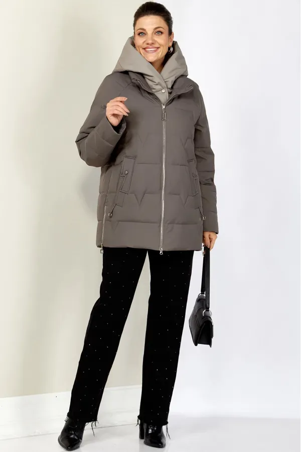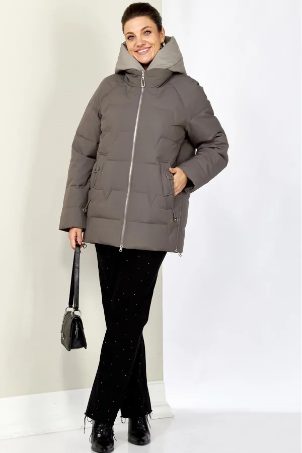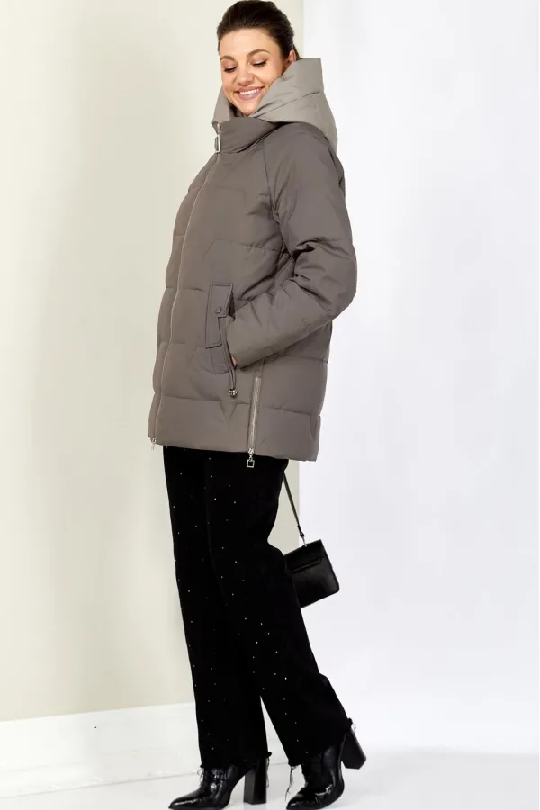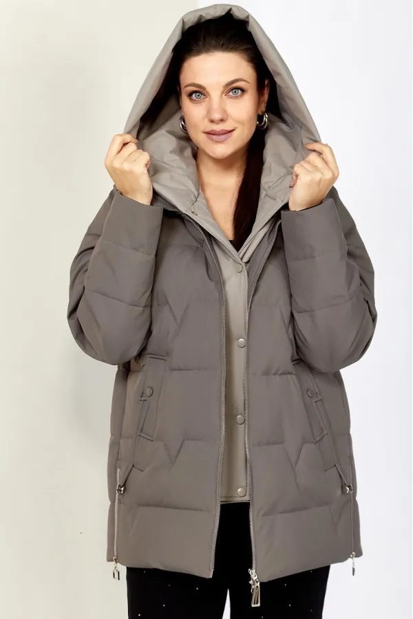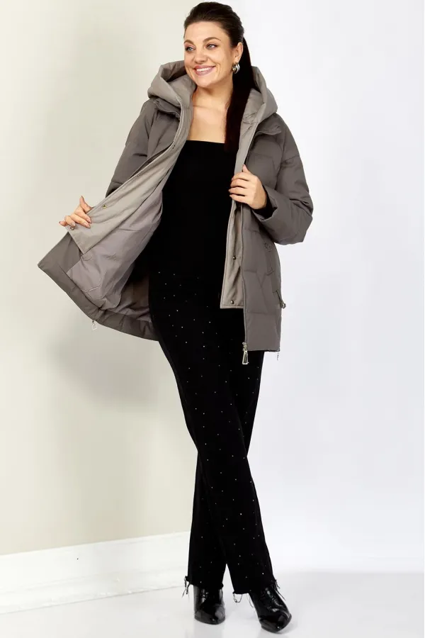 Зимняя стильная женская куртка станет идеальным дополнением гардероба в холодные дни. Выполнена из мягкой, матовой курточной ткани с водоотталкивающим эффектом. На качественной сатиновой подкладке из поливискозы. В качестве утеплителя используется «Холлофайбер» (специально разработан для зимних курток) производство Бельгия с плотностью 200 г/кв.м.. Утеплитель по своим характеристикам легкий и прекрасно держит тепло. По переду прорезные карманы с декоративным элементом на магнитах. Рукав реглан. Застежка двойная, центральная, на тесьму-молнию и под борт на потайные металлические кнопки. Под борт и капюшон отделаны контрастной тканью компаньоном, что придает изделию оригинальный вид.