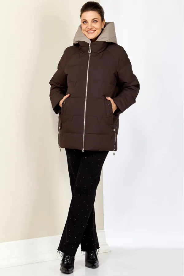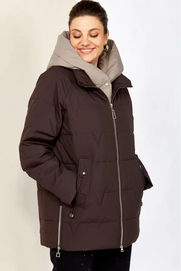 Зимняя стильная женская куртка станет идеальным дополнением гардероба в холодные дни. Выполнена из мягкой, матовой курточной ткани с водоотталкивающим эффектом. На качественной сатиновой подкладке из поливискозы. В качестве утеплителя используется «Холлофайбер» (специально разработан для зимних курток) производство Бельгия с плотностью 200 г/кв.м.. Утеплитель по своим характеристикам легкий и прекрасно держит тепло. По переду прорезные карманы с декоративным элементом на магнитах. Рукав реглан. Застежка двойная, центральная, на тесьму-молнию и под борт на потайные металлические кнопки. Под борт и капюшон отделаны контрастной тканью компаньоном, что придает изделию оригинальный вид.