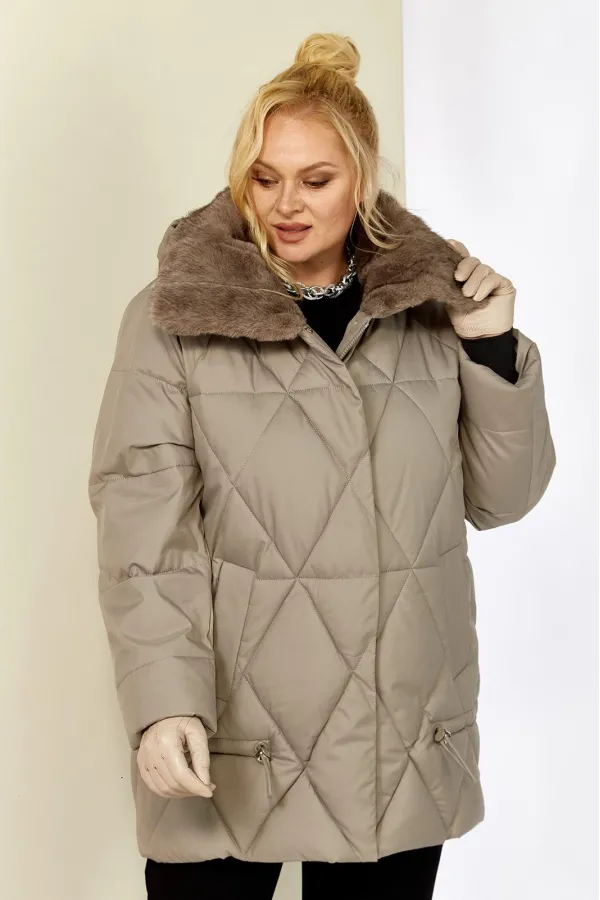 Зимняя, модная женская куртка, которая идеально подойдет для холодных дней, обеспечивая комфорт и защиту от ветра. Изделие прямого, классического стиля, выполнена из курточной матовой ткани высокого качества, непромокаемая. Утеплитель «Холлофайбер» хорошо держит форму и не сбивается. По переду центральная застежка на молнии и металлические кнопки. Карманы прорезного типа на магнитах. Нижняя часть изделия регулируется декоративным шнуром. Рукав втачной. Для защиты от ветра и мороза, рукава по низу дополнены внутренними трикотажными манжетами. Воротник отделан мехом, максимально по внешнему виду приближенный к натуральному «Норка». Капюшон съемный, регулируется декоративным шнуром. Спинка цельная.