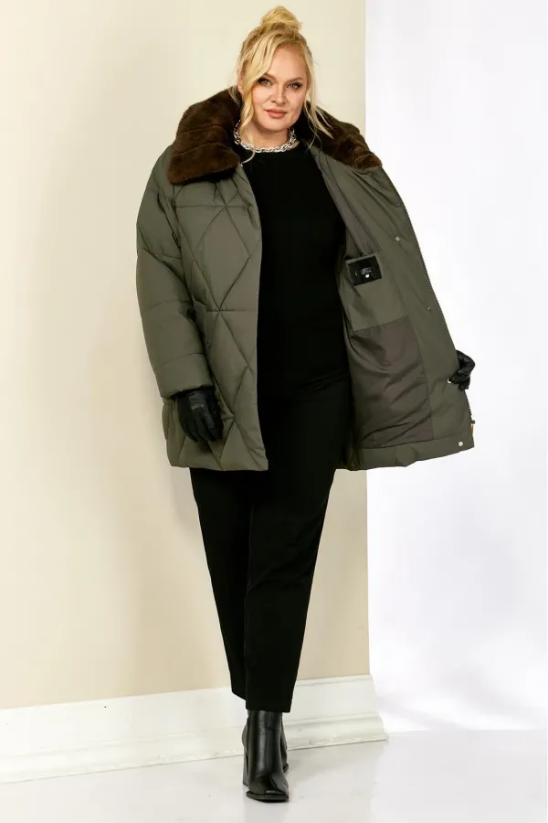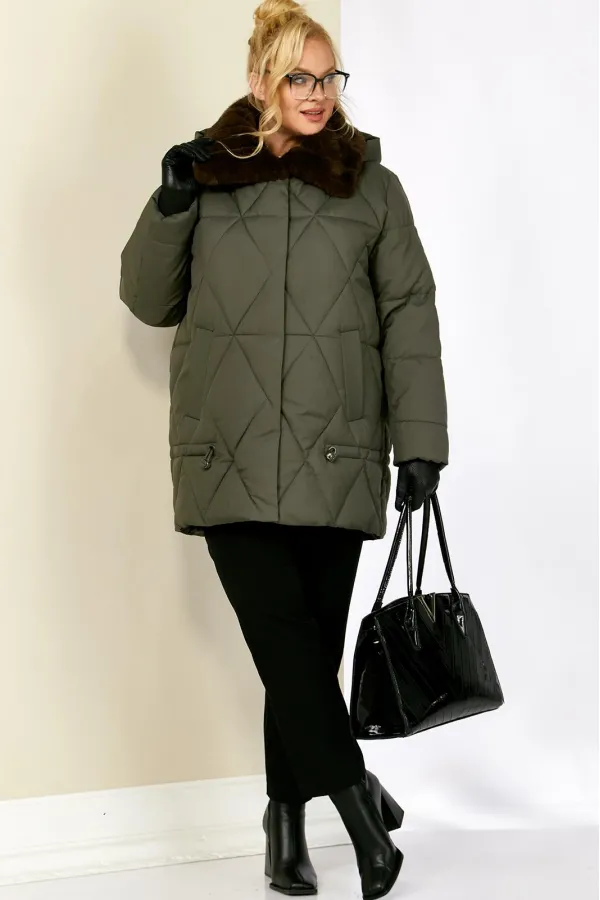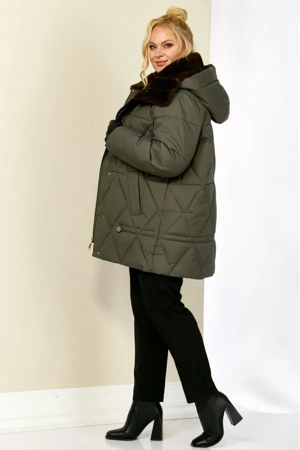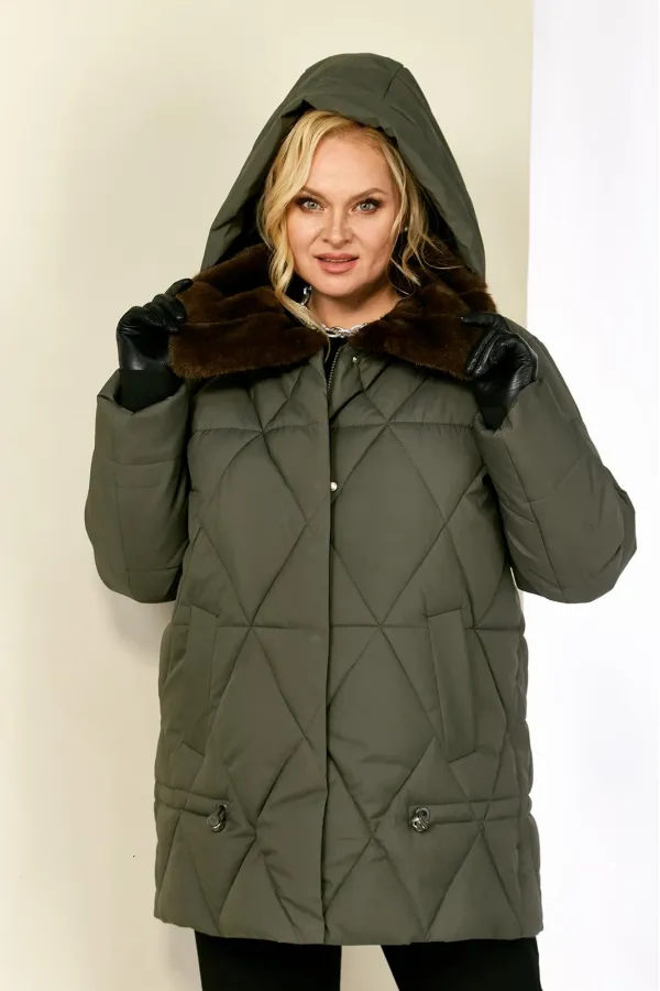 Зимняя, модная женская куртка, которая идеально подойдет для холодных дней, обеспечивая комфорт и защиту от ветра. Изделие прямого, классического стиля, выполнена из курточной матовой ткани высокого качества, непромокаемая. Утеплитель «Холлофайбер» хорошо держит форму и не сбивается. По переду центральная застежка на молнии и металлические кнопки. Карманы прорезного типа на магнитах. Нижняя часть изделия регулируется декоративным шнуром. Рукав втачной. Для защиты от ветра и мороза, рукава по низу дополнены внутренними трикотажными манжетами. Воротник отделан мехом, максимально по внешнему виду приближенный к натуральному «Норка». Капюшон съемный, регулируется декоративным шнуром. Спинка цельная.